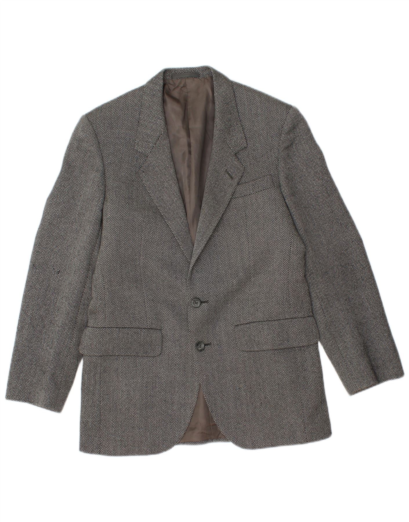 AQUASCUTUM Mens 2 Button Blazer Jacket UK 36 Small Grey Herringbone