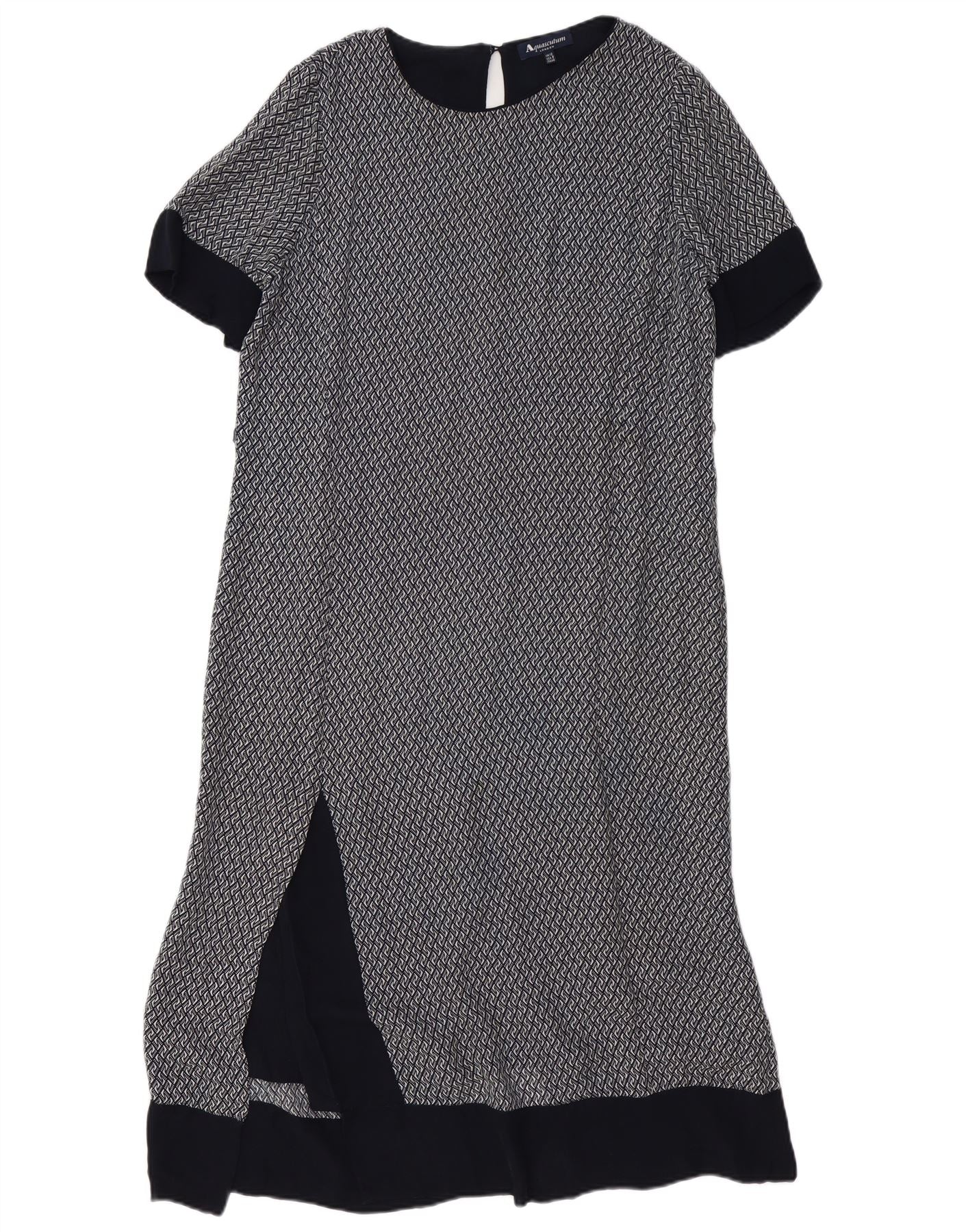 Женское платье макси AQUASCUTUM UK 12, средний темно-синий, шелк с геометрическим рисунком