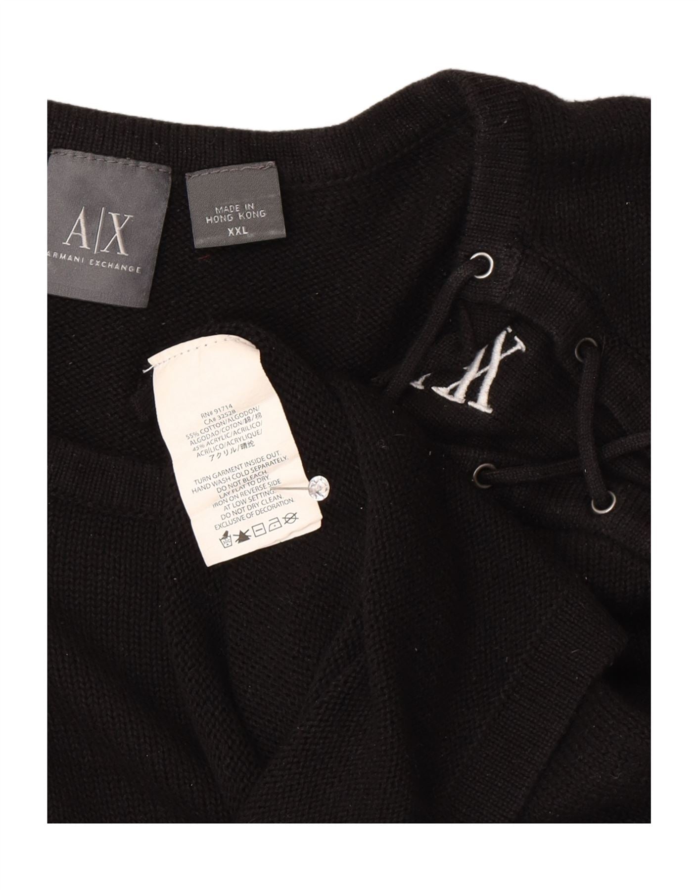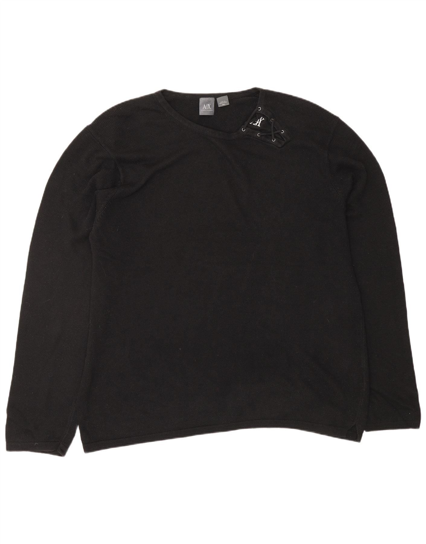 ARMANI EXCHANGE Mens V-Neck Jumper Sweater 2XL Black Cotton