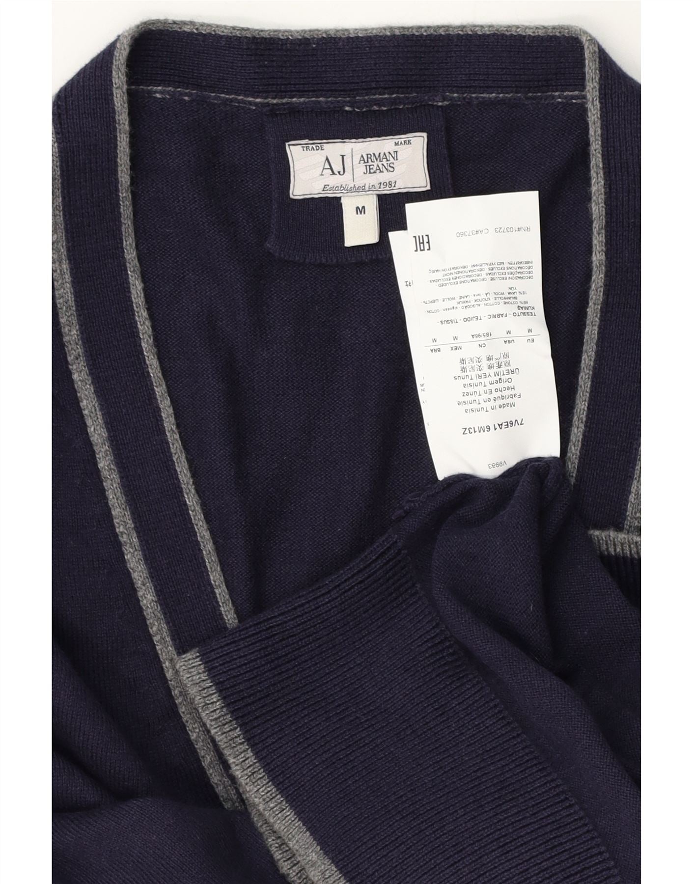 ARMANI JEANS Мужской свитер-кардиган среднего размера, темно-синий, хлопок с цветными блоками