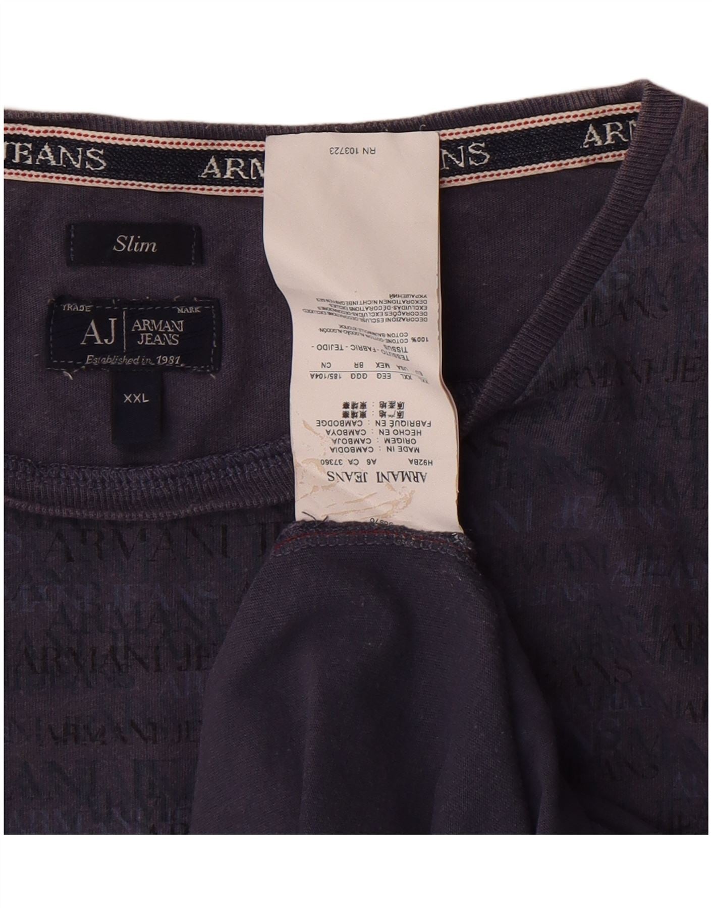ARMANI JEANS Мужская тонкая футболка с рисунком Топ 2XL Темно-синий