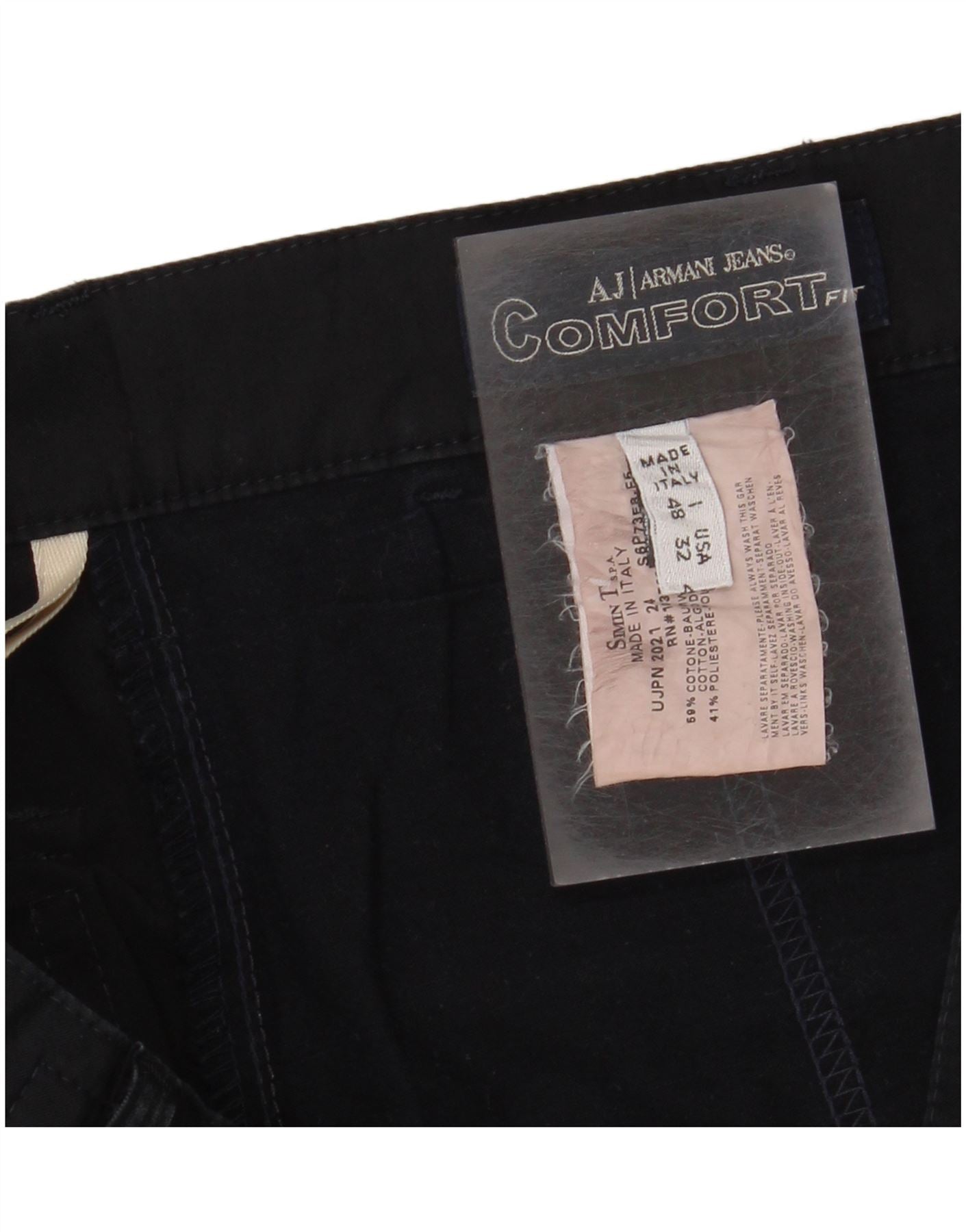 ARMANI Mens Straight Chino Trousers IT 48 Medium W32 L33 Navy Blue Cotton