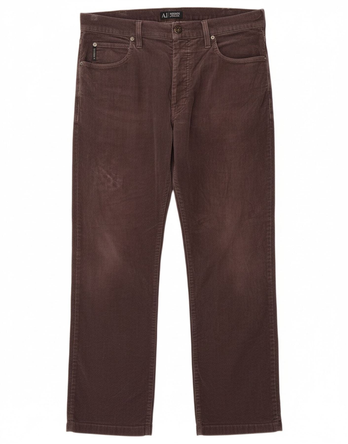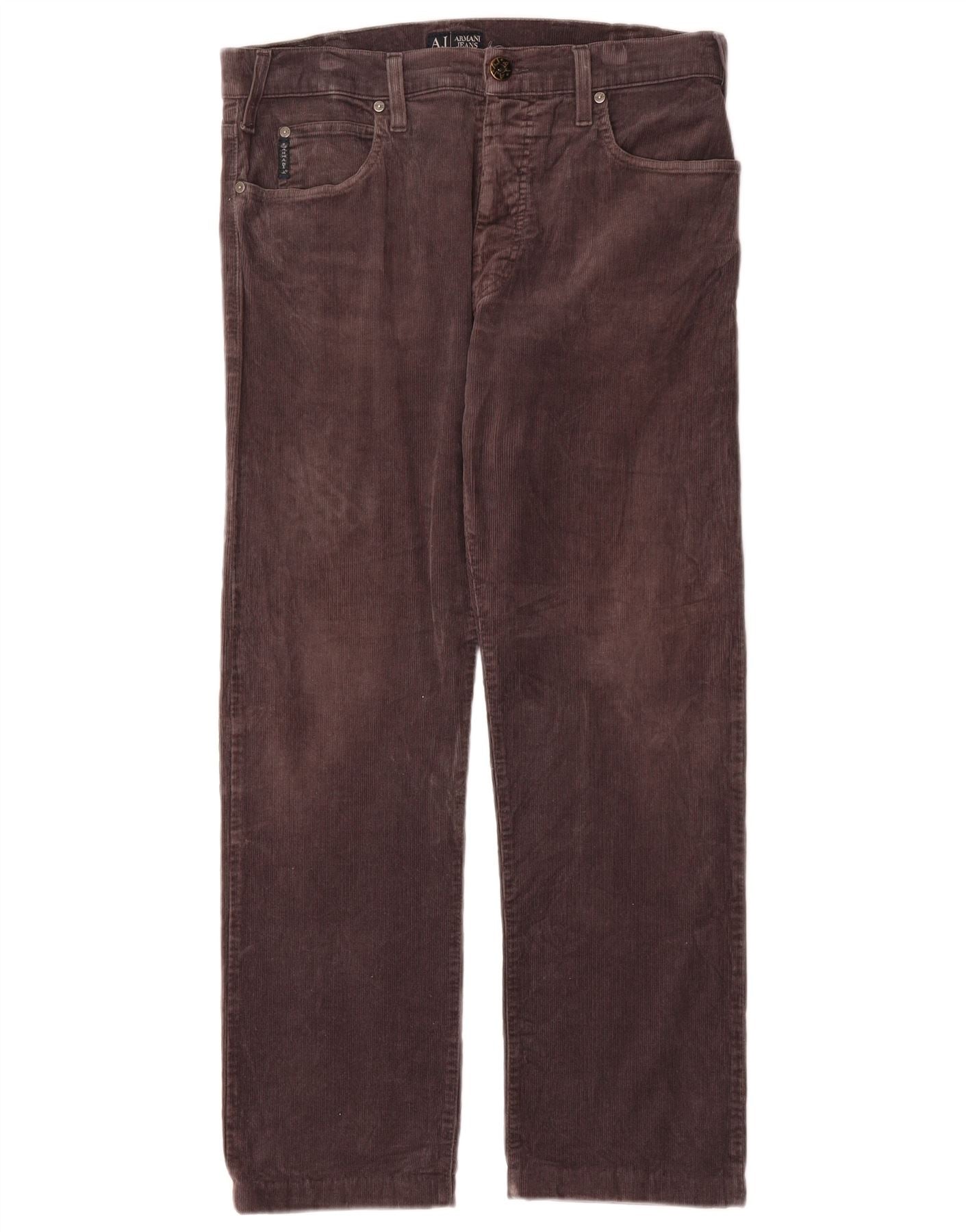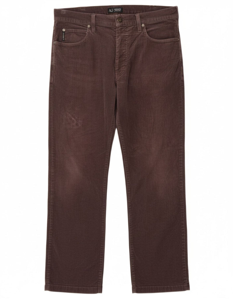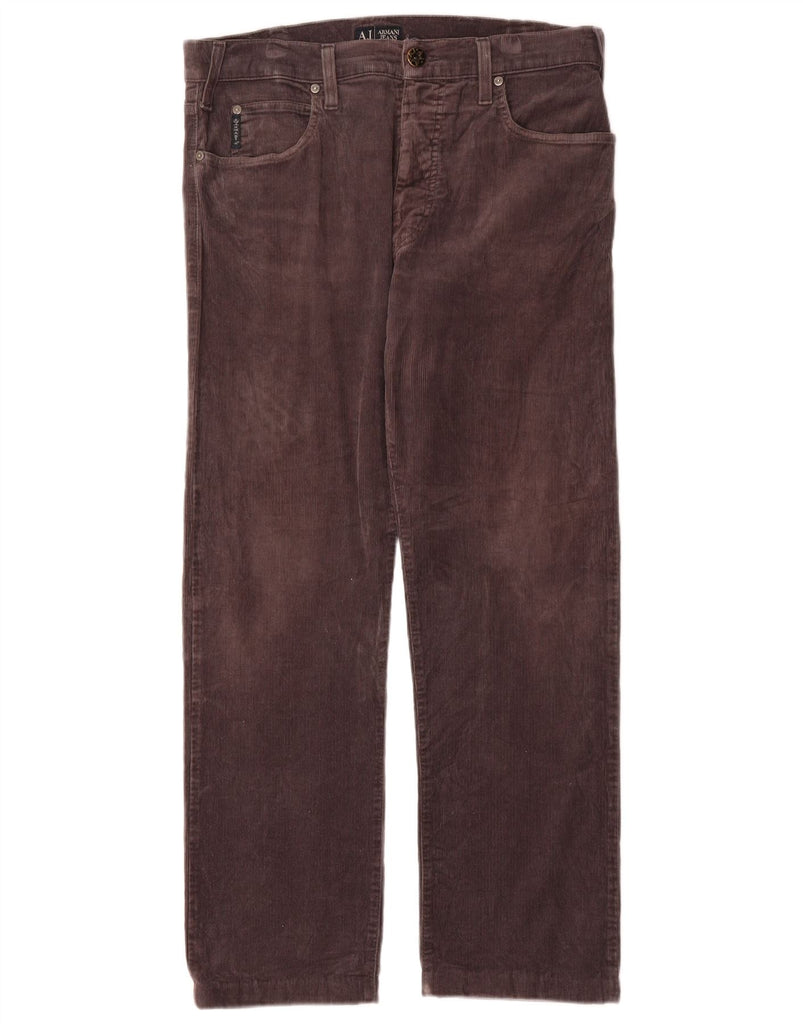 ARMANI Mens Straight Corduroy Trousers W33 L29 Maroon Cotton