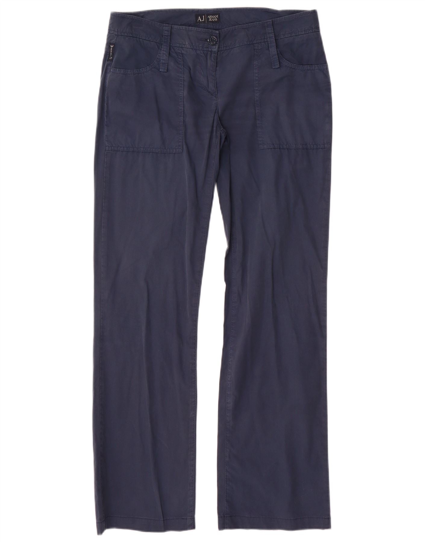 ARMANI Womens Straight Casual Trousers W28 L31 Navy Blue Cotton