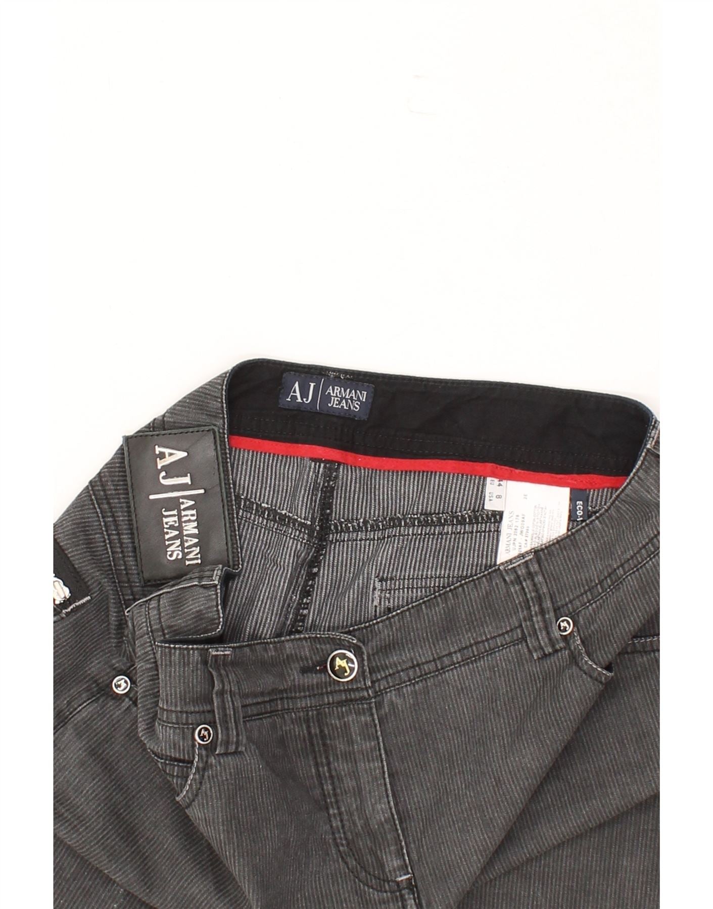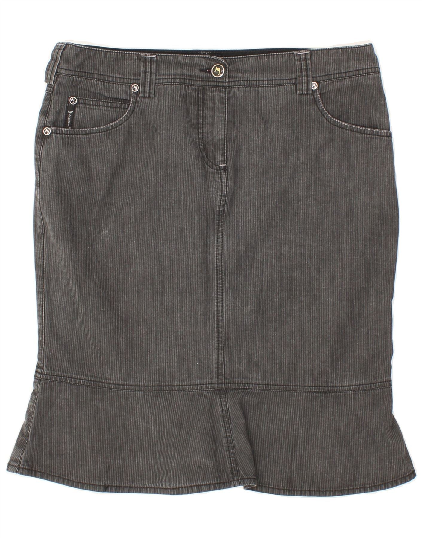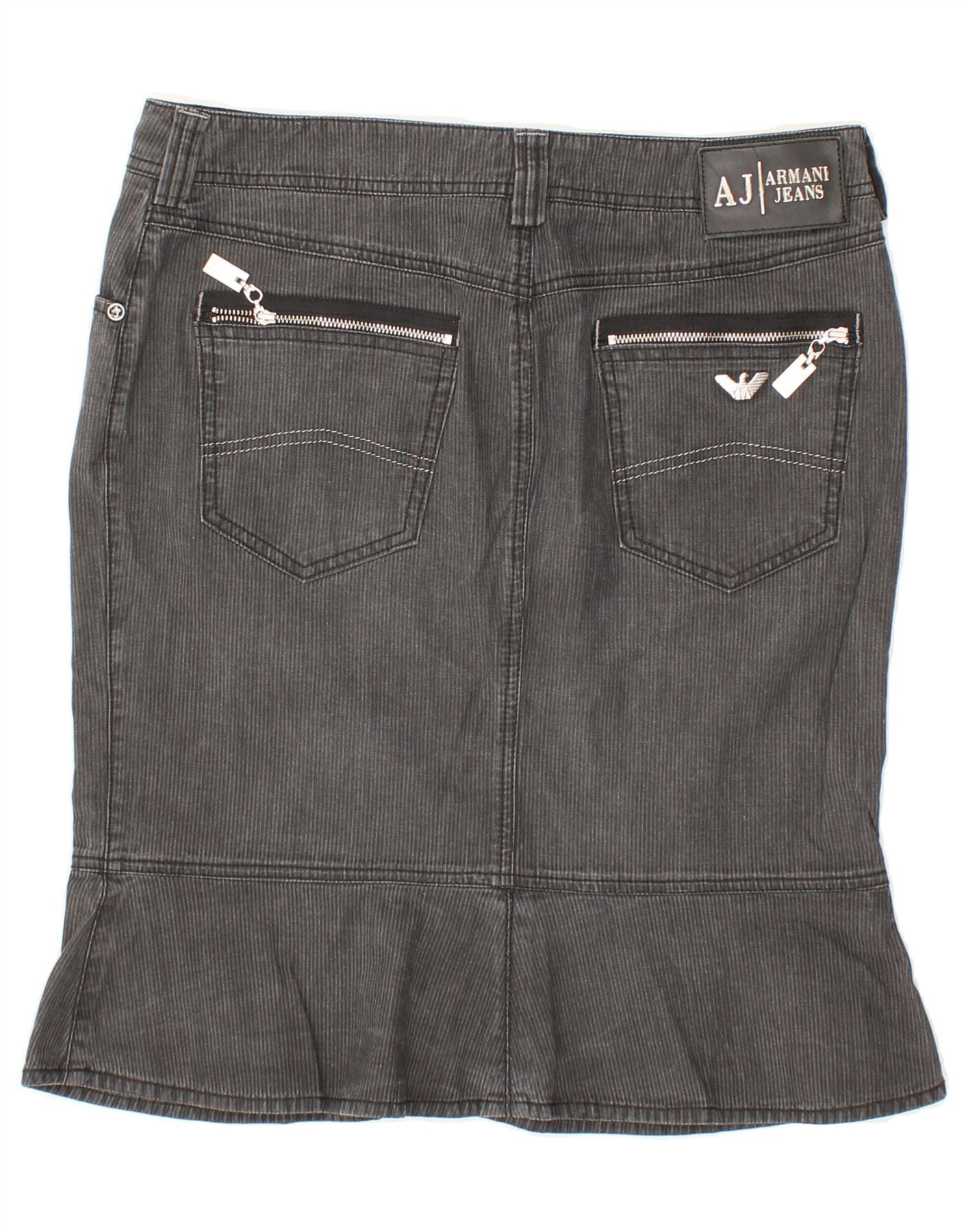 ARMANI Womens Tulip Skirt IT 44 Medium W30 Grey Striped Cotton