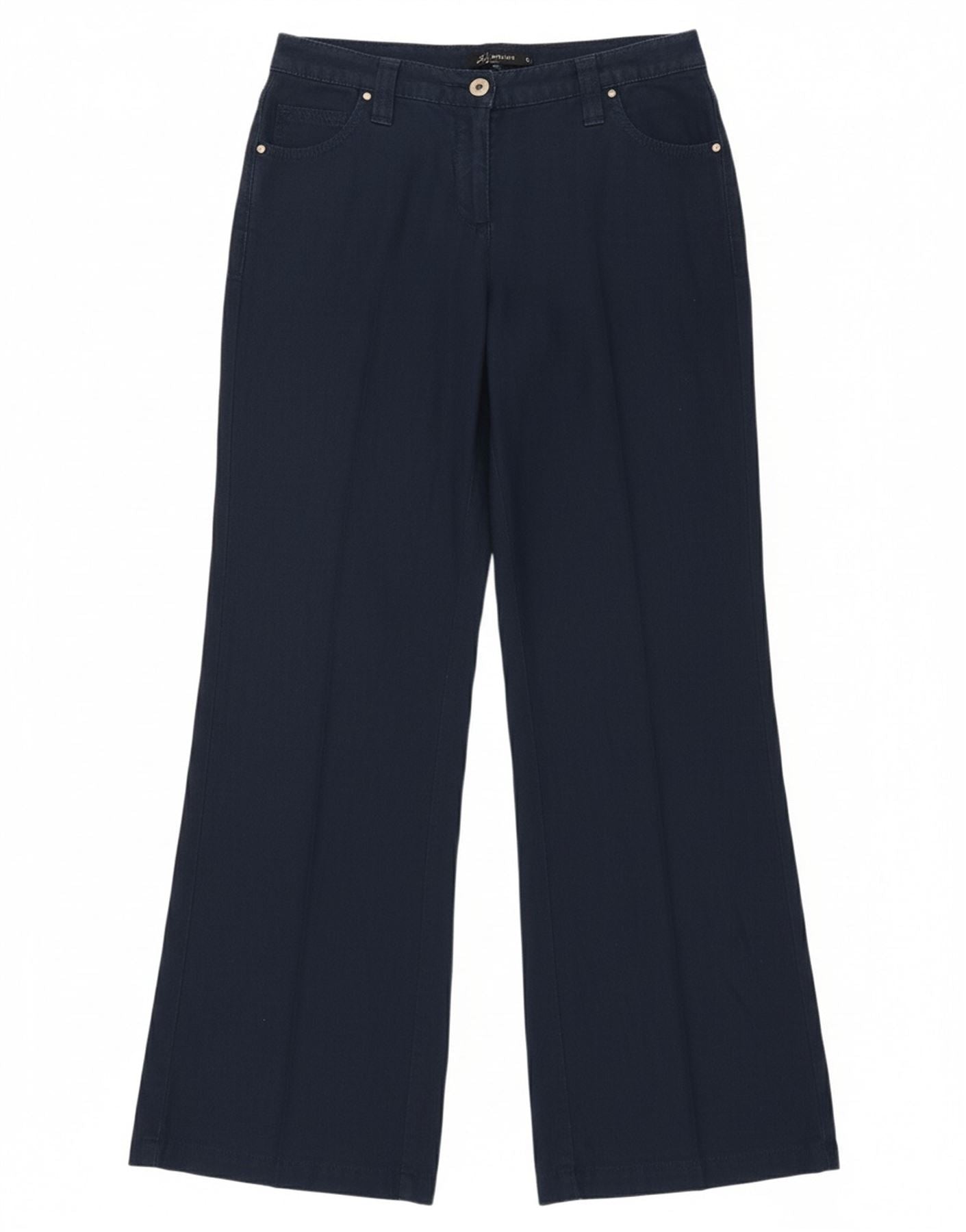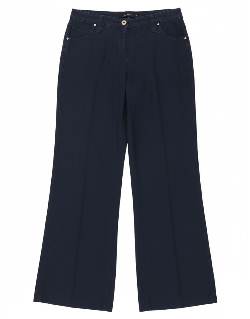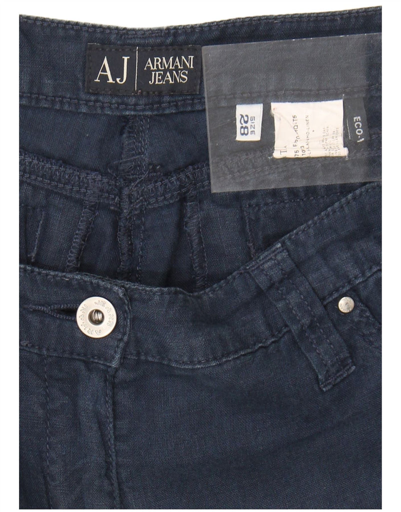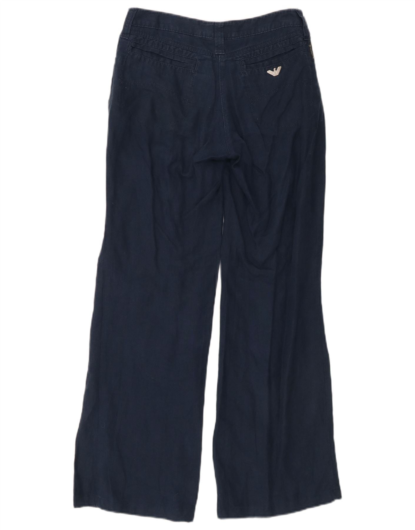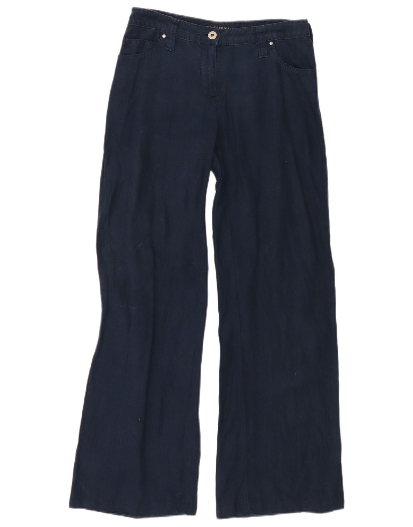 ARMANI Womens Wide Leg Casual Trousers W28 L29 Navy Blue Linen