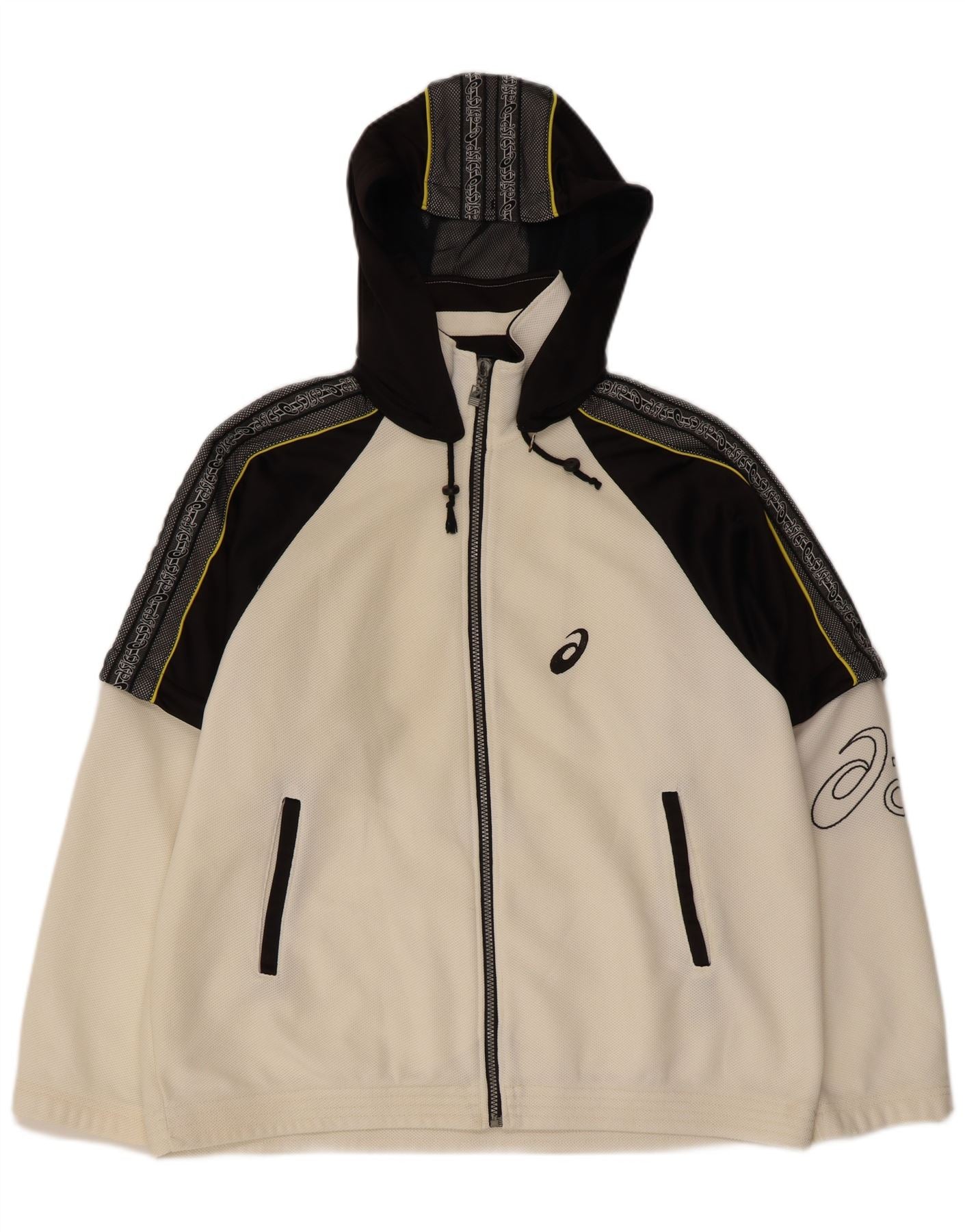 Home > Винтажная одежда Asics > Мужская винтажная одежда Asics > Спортивные топы > Мужской спортивный костюм с капюшоном и графикой ASICS, средний белый цветной блок, верхняя куртка