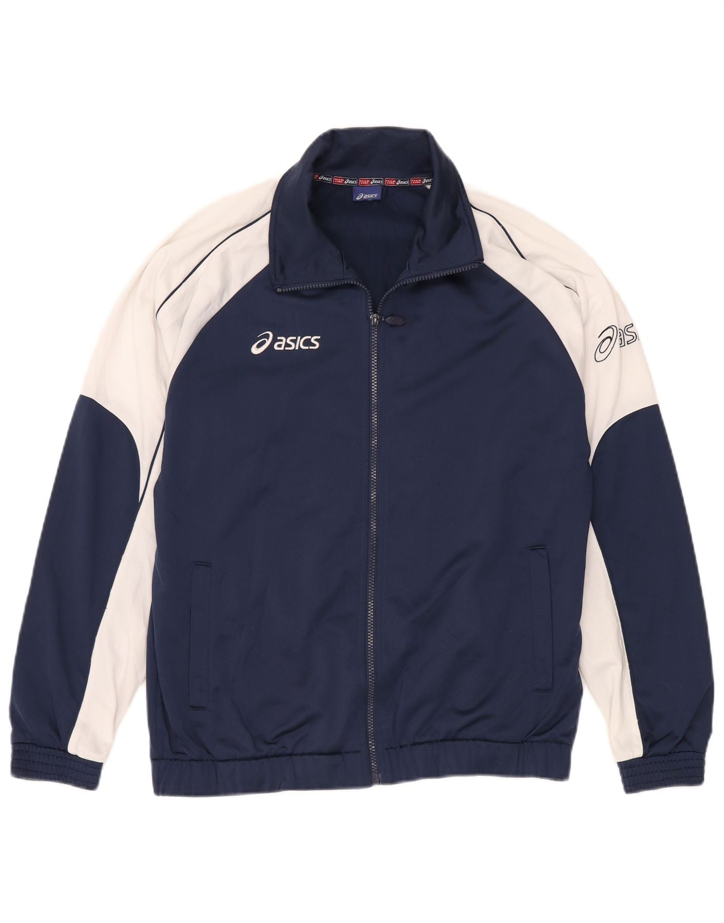 Мужской спортивный костюм ASICS с графическим рисунком, верхняя куртка, средний темно-синий, с цветными блоками