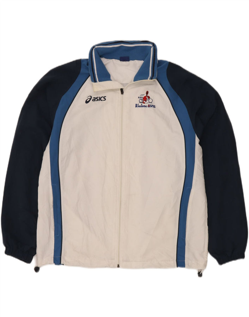 ASICS Mens Graphic Tracksuit Top Jacket XL White Colourblock Polyester