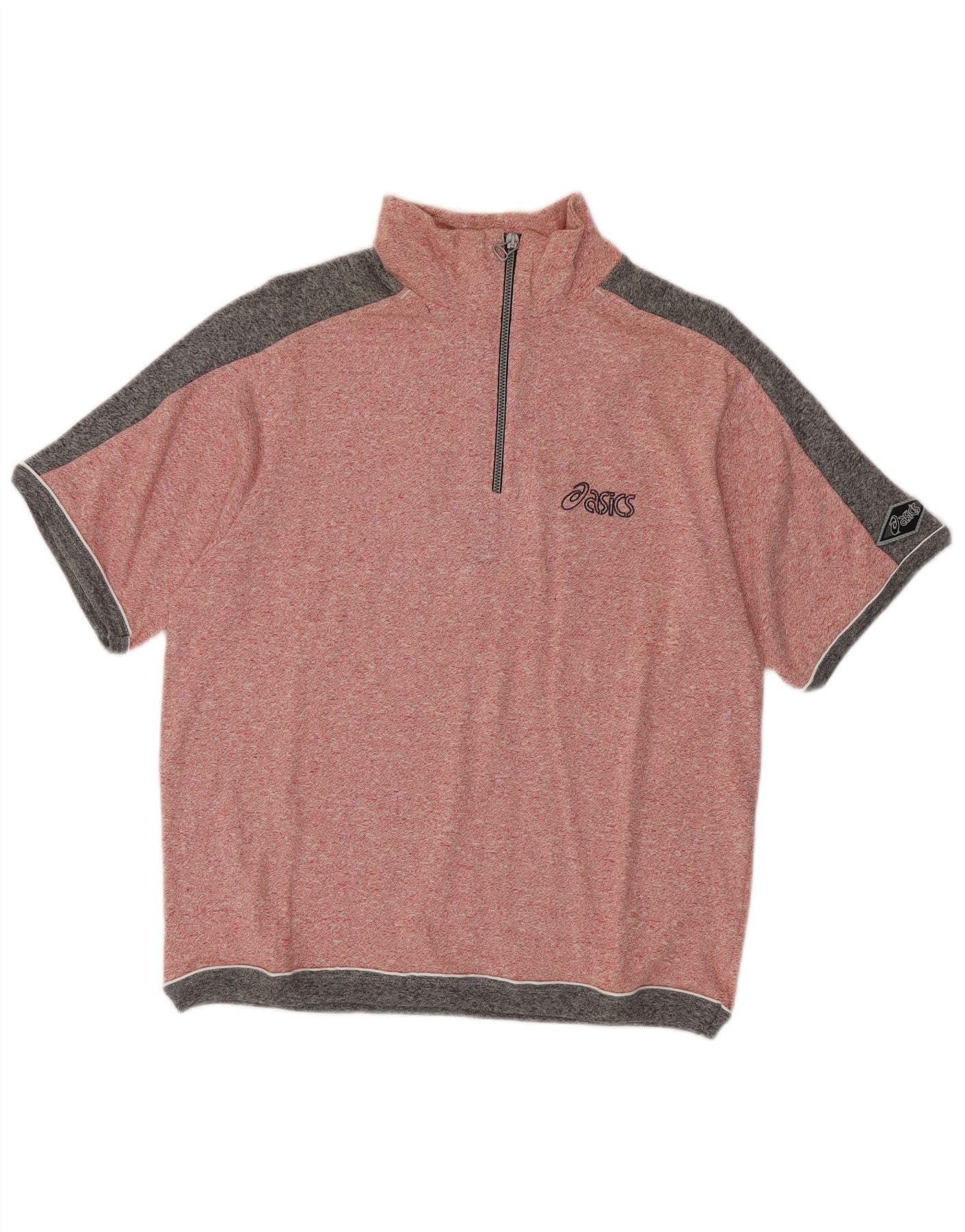 Мужской джемпер с короткими рукавами и воротником-молнией Asics, средний розовый с цветными блоками