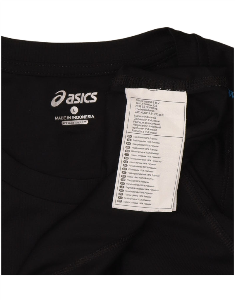 - AI Description: This Asics mens Graphic T-Shirt Top is crafted from 100 percent polyester knit, offering a lightweight and breathable feel. Its classic round neck and short sleeves provide a comfortable, athletic fit. The pullover design ensures ease of wear. A subtle logo accent adds a signature touch to this performance-focused garment, ideal for sports activities.