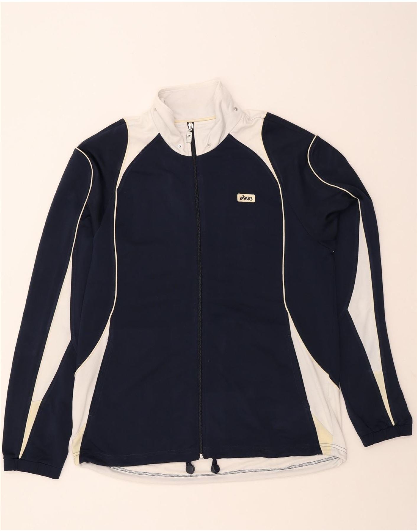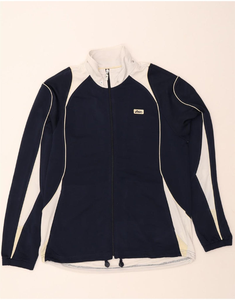 ASICS Mens Tracksuit Top Jacket Large Navy Blue Colourblock Polyester