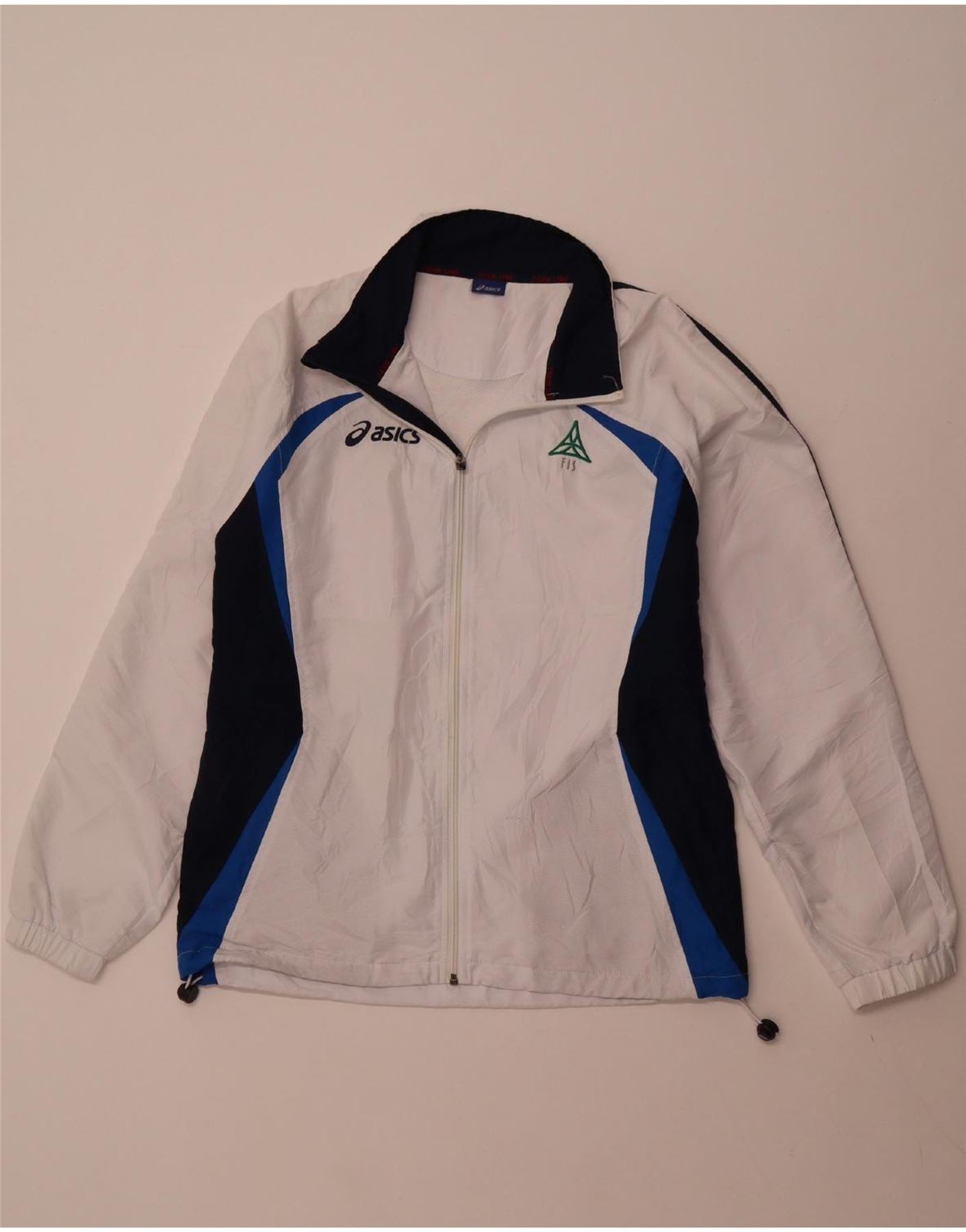 Home > Винтажная одежда Asics > Мужская винтажная одежда Asics > Спортивные топы > Мужская спортивная куртка ASICS, большая белая полиэстер с цветными блоками