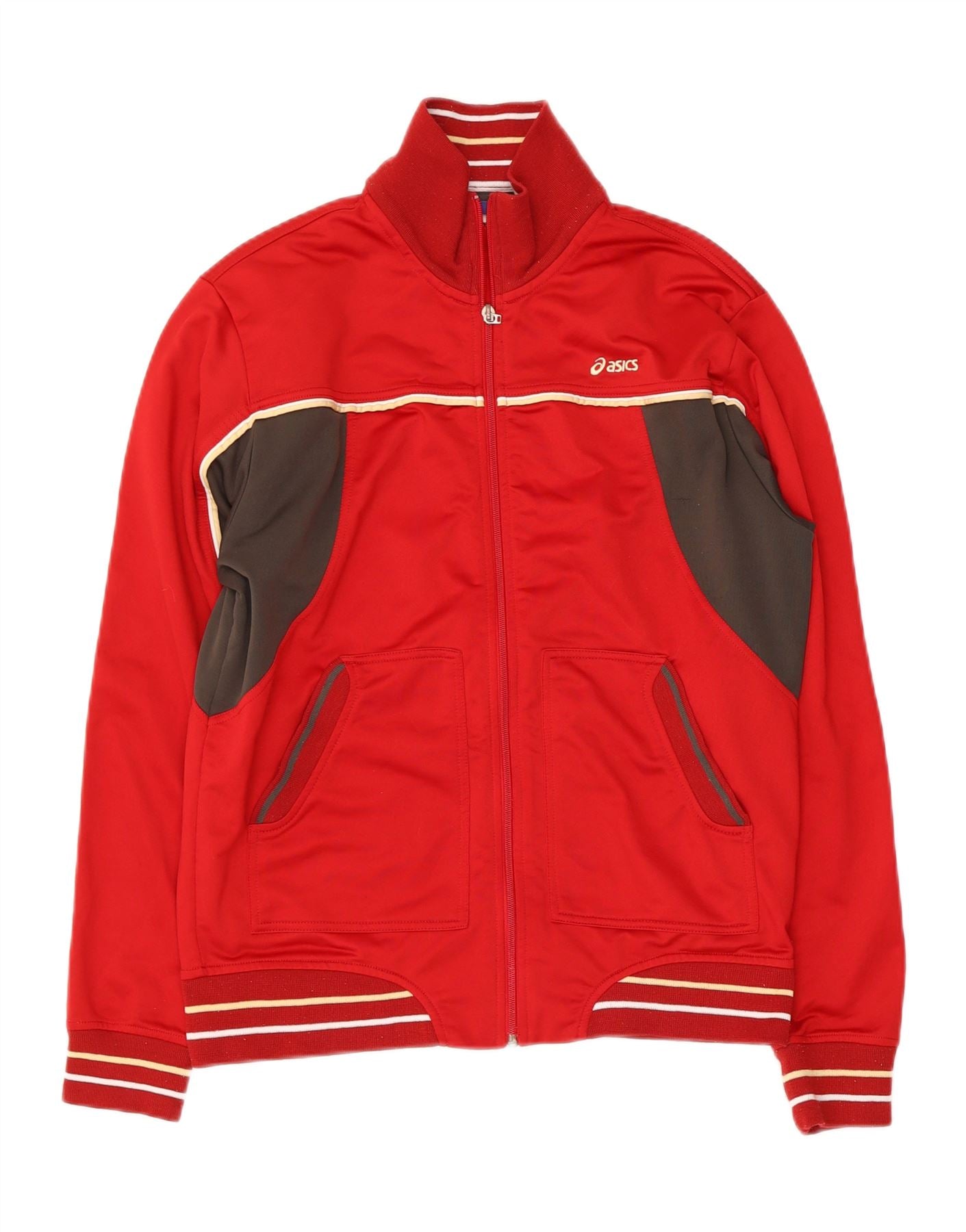 Home > Винтажная одежда Asics > Мужская винтажная одежда Asics > Спортивные топы > Мужской спортивный костюм ASICS, верхняя куртка, средний красный полиэстер с цветными блоками