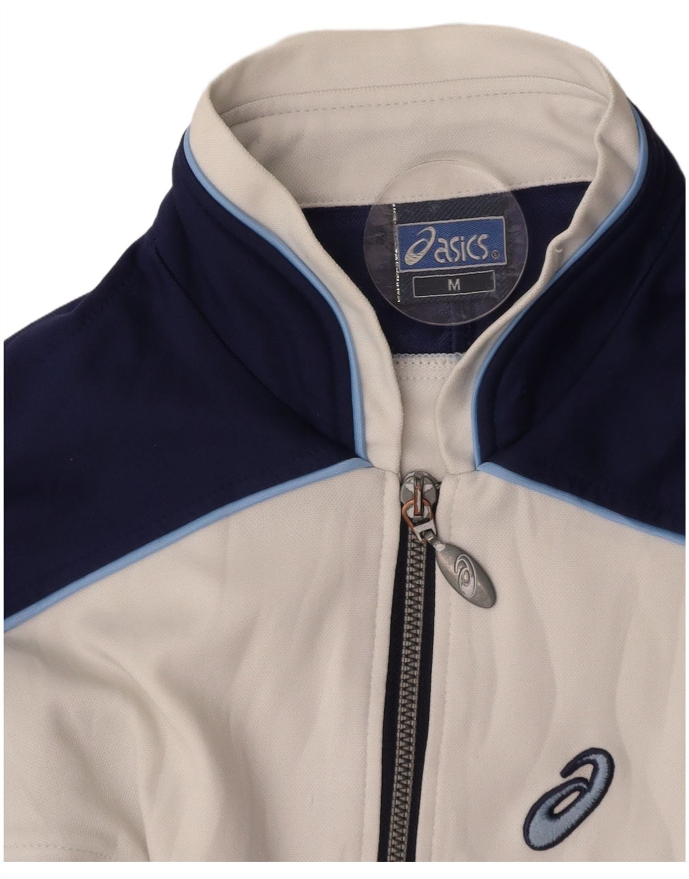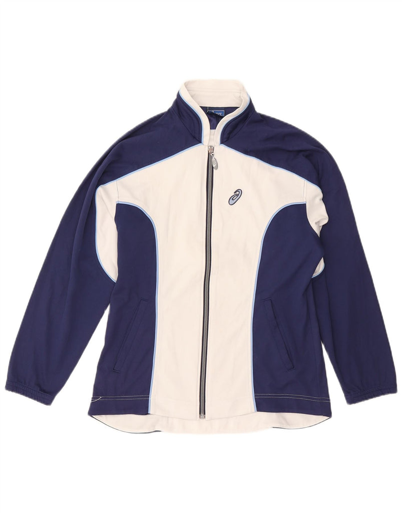 ASICS Womens Tracksuit Top Jacket UK 14 Medium Navy Blue Colourblock