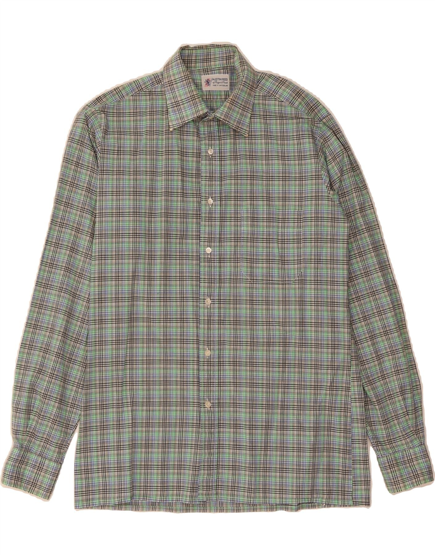 AUSTIN REED Mens Shirt Size 38/15 Medium Green Check Cotton