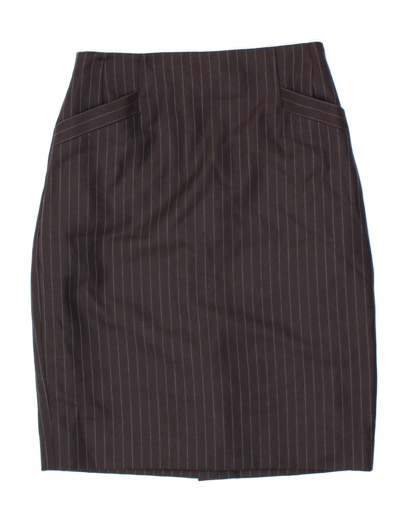 AUSTIN REED Womens Straight Skirt UK 14 Medium W30 Black Striped Wool