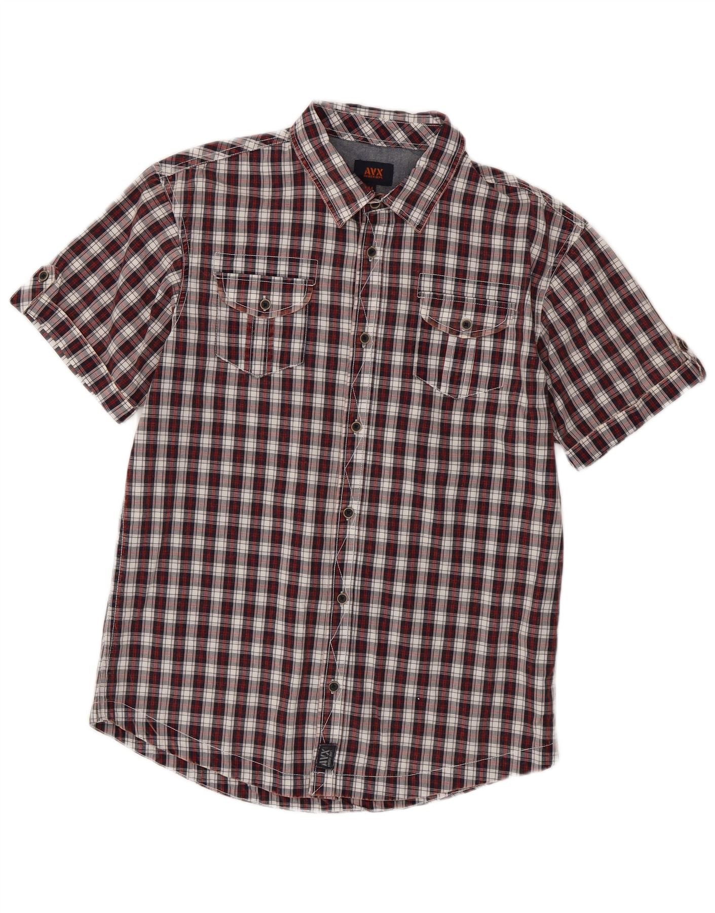 Home > Винтажная одежда Avirex > Мужской > AVIREX Мужская рубашка с коротким рукавом, хлопковая клетка среднего красного цвета