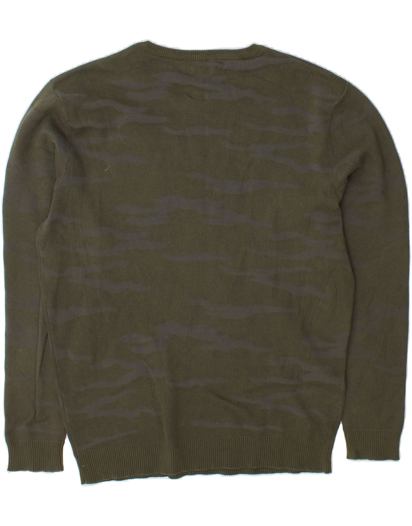 AVIREX Womens Crew Neck Jumper Sweater UK 18 XL Green Camouflage Cotton