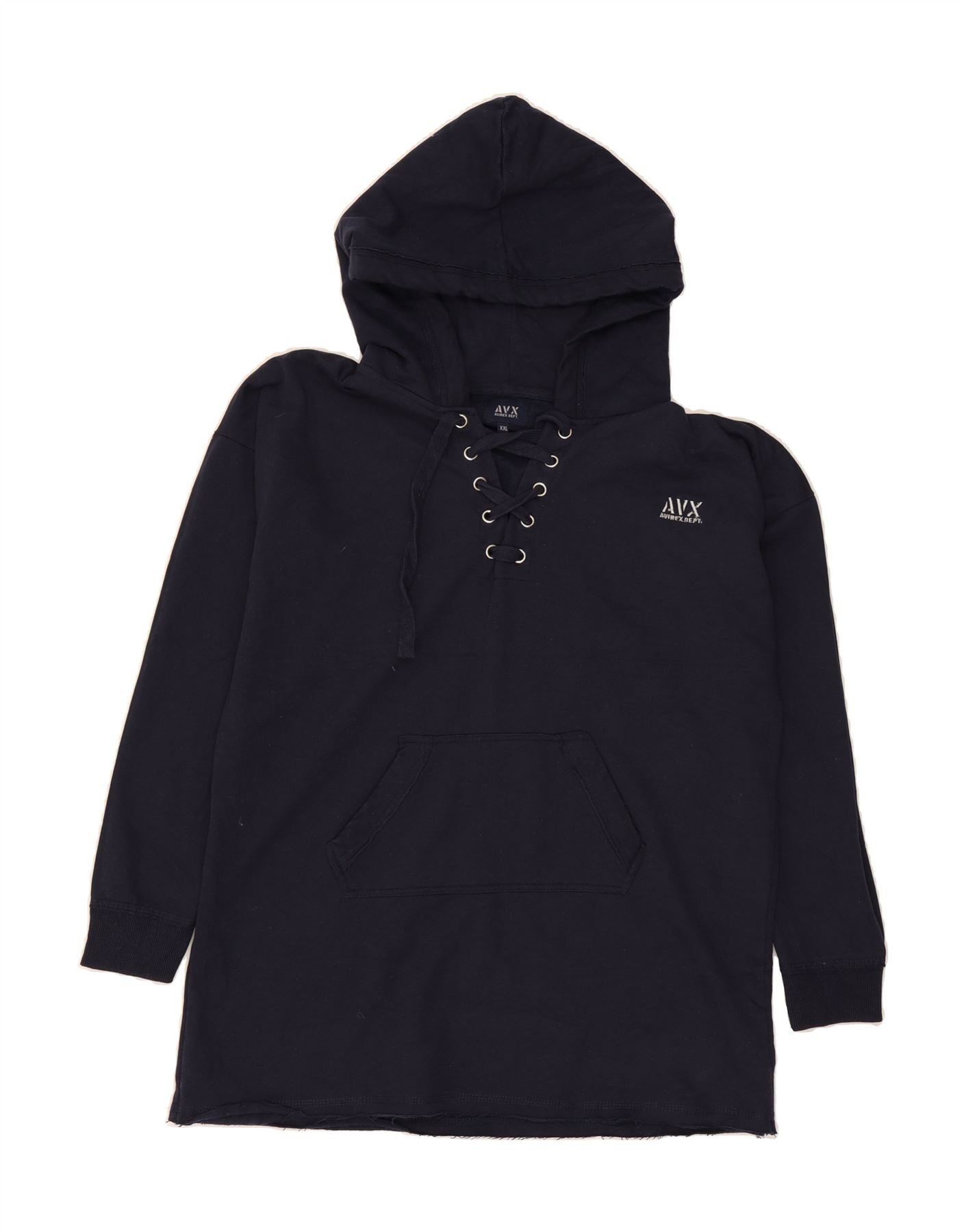 AVIREX Womens Longline Hoodie Jumper UK 20 2XL Navy Blue Cotton