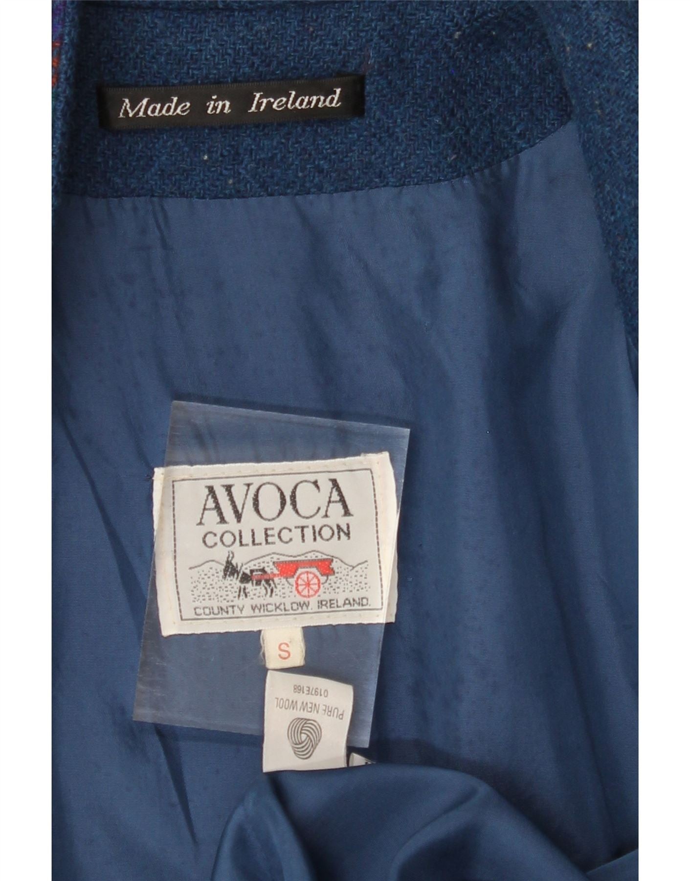 - AI Description: Elevate your wardrobe with this classic Avoca coat, crafted in Ireland from pure new wool tweed. The blue plaid pattern and regular fit offer timeless style. This pre-owned, lined coat features practical pockets. While showing minor signs of wear, including slight fading, small stains, and wear to the label and lining, it remains a stylish choice. Label size S.