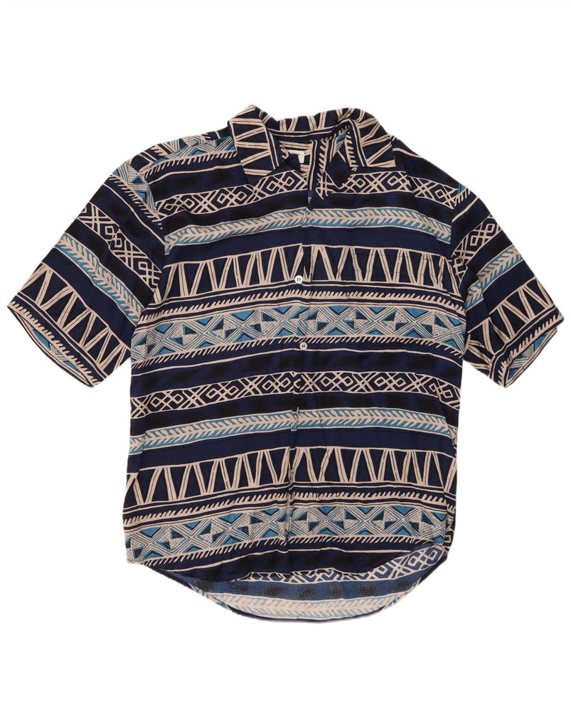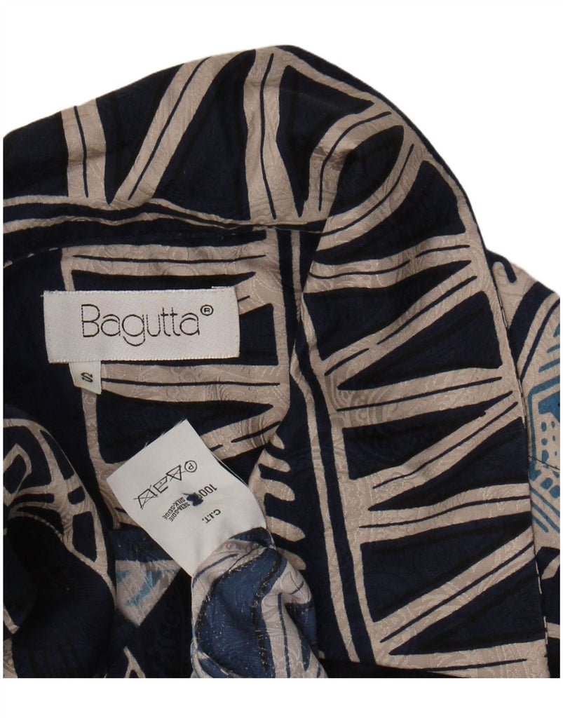 Мужская рубашка BAGUTTA с коротким рукавом, маленькая, темно-синяя, шелковая с геометрическим рисунком