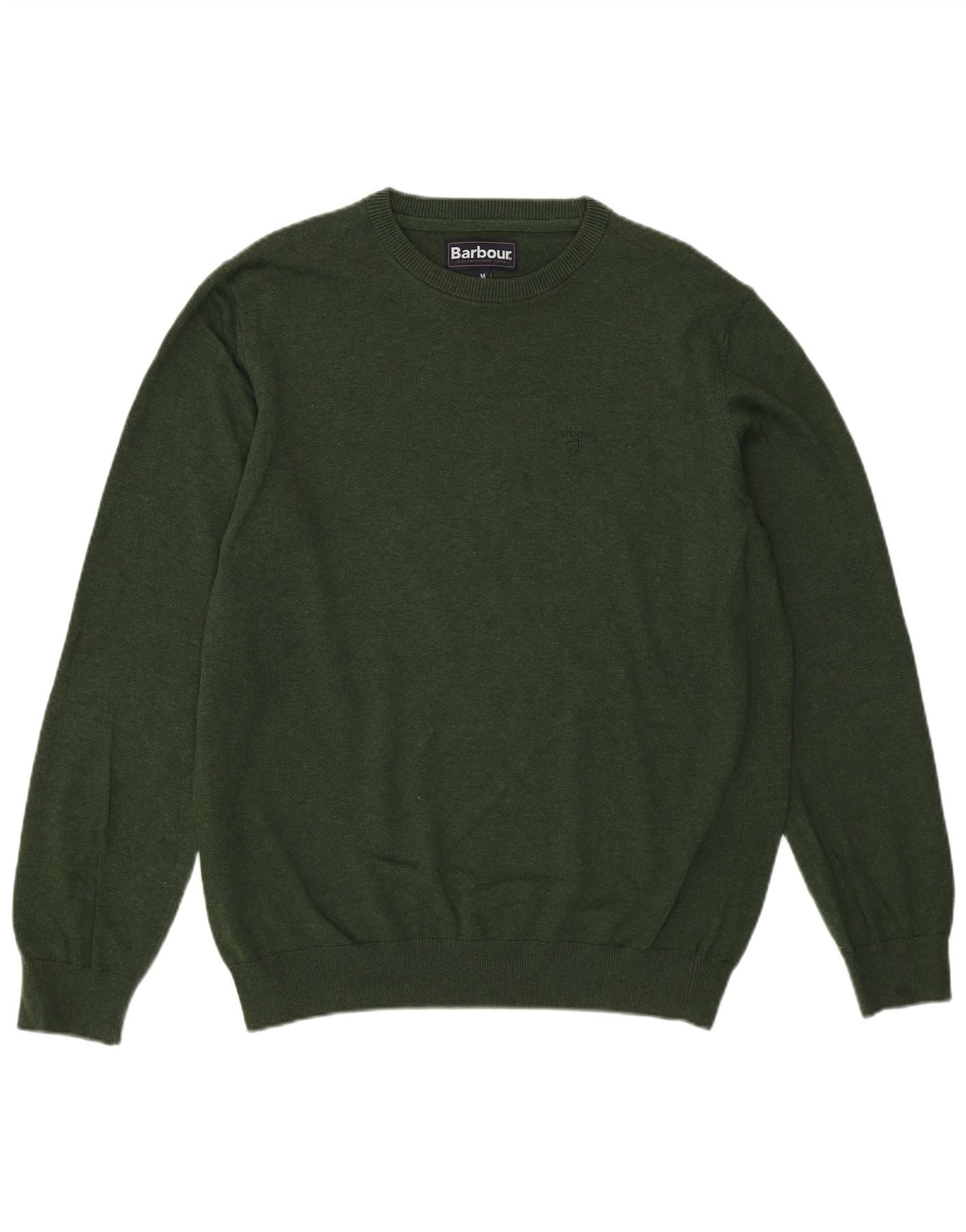 - Описание ИИ: Мужской джемпер с круглым вырезом Barbour выполнен из легкого трикотажа насыщенного зеленого оттенка. Имеет классический круглый вырез и длинные рукава. Регулярная посадка обеспечивает комфортное ношение. Рукава и подол с манжетами создают аккуратный вид. Тонкий вышитый логотип добавляет фирменный штрих.