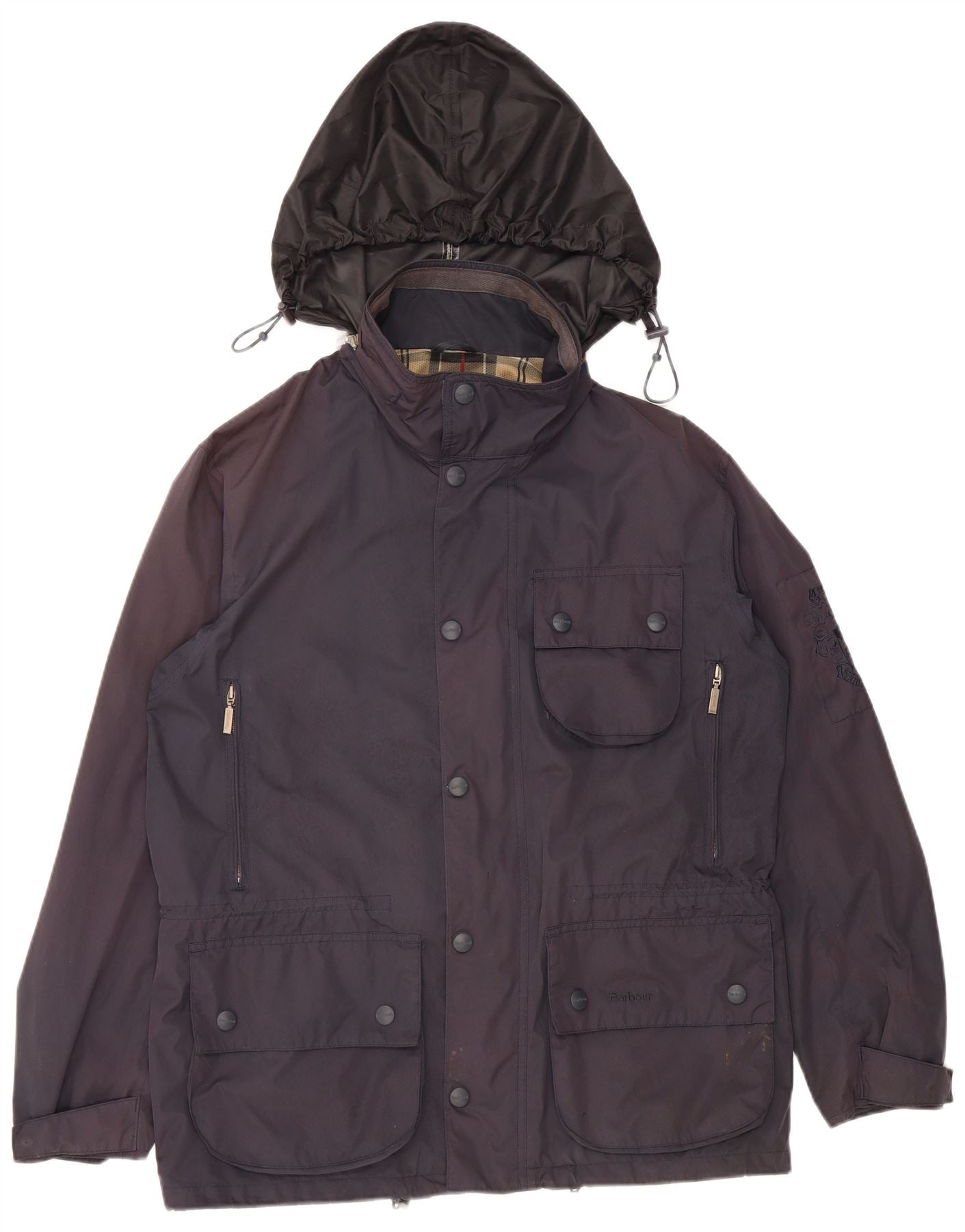 BARBOUR Mens Hooded Rain Jacket UK 38 Medium Navy Blue Polyester