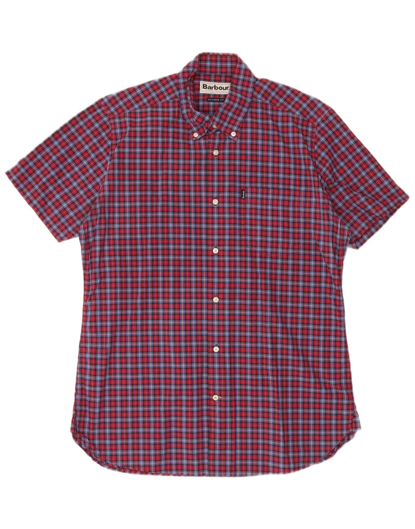 BARBOUR Мужская приталенная рубашка с коротким рукавом, средняя разноцветная клетка