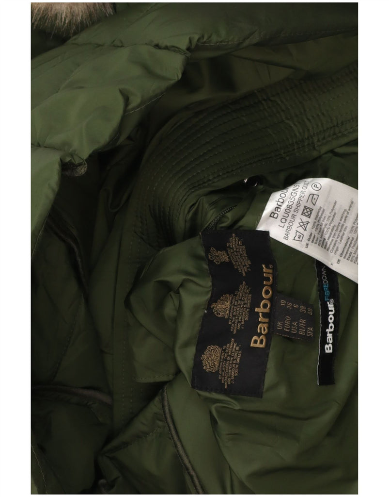 BARBOUR Womens Hooded Padded Jacket UK 10 Small Green Polyester