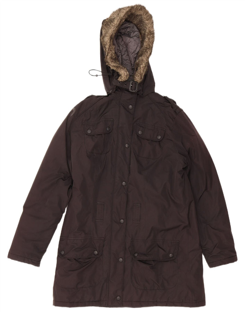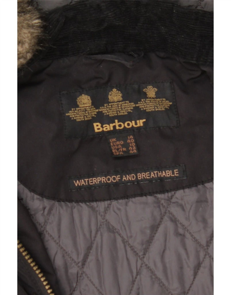 BARBOUR Womens Hooded Parka Jacket UK 14 Large Black Polyester