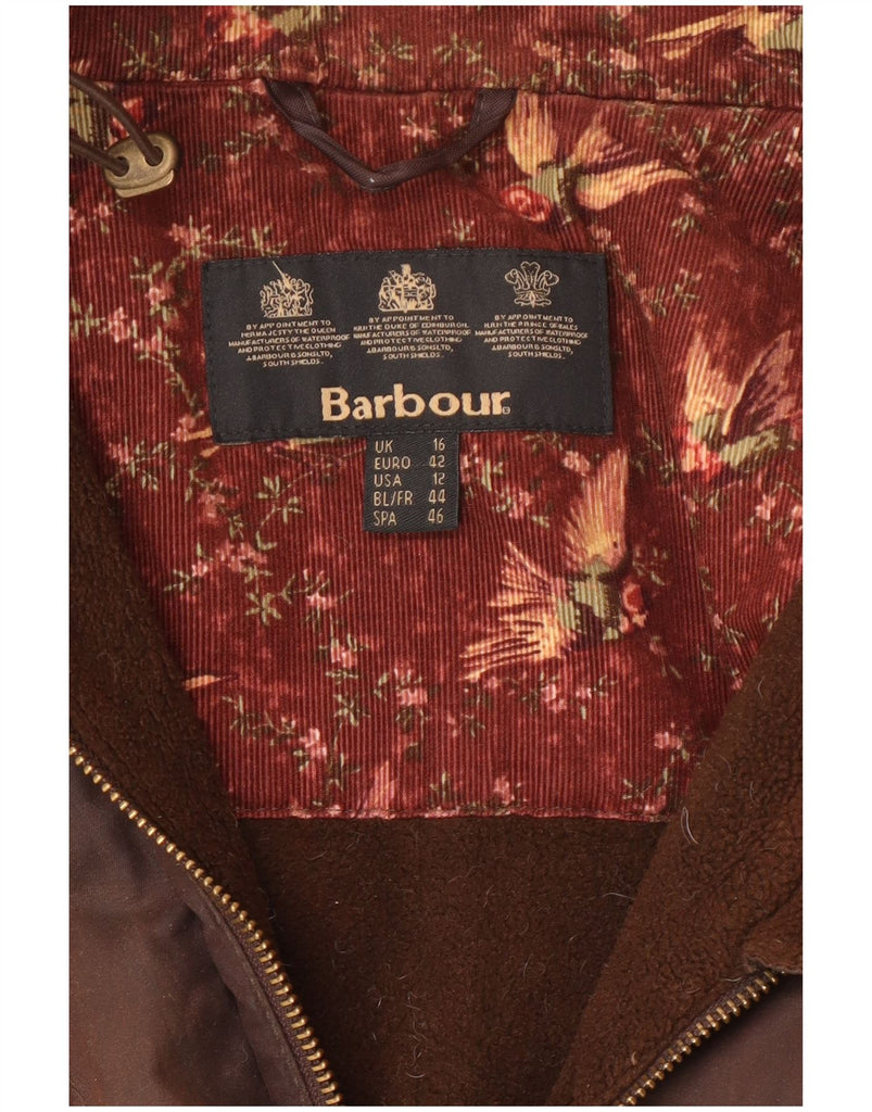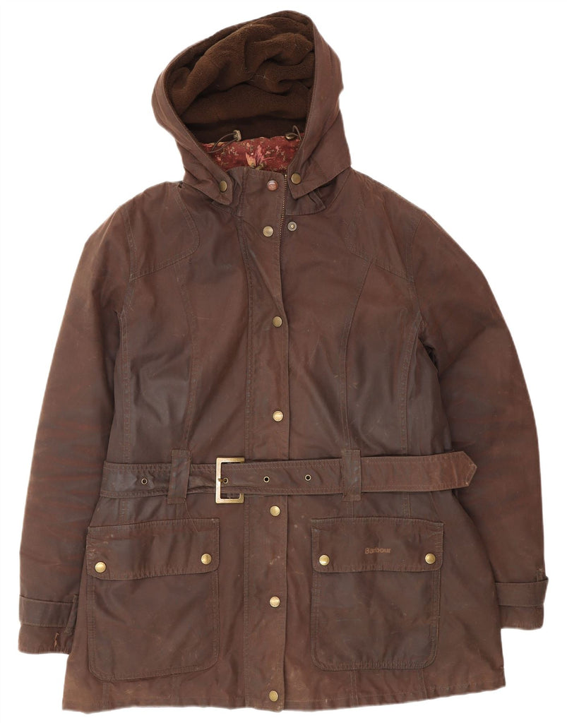BARBOUR Womens Hooded Waxed Cotton Jacket UK 16 Large Brown