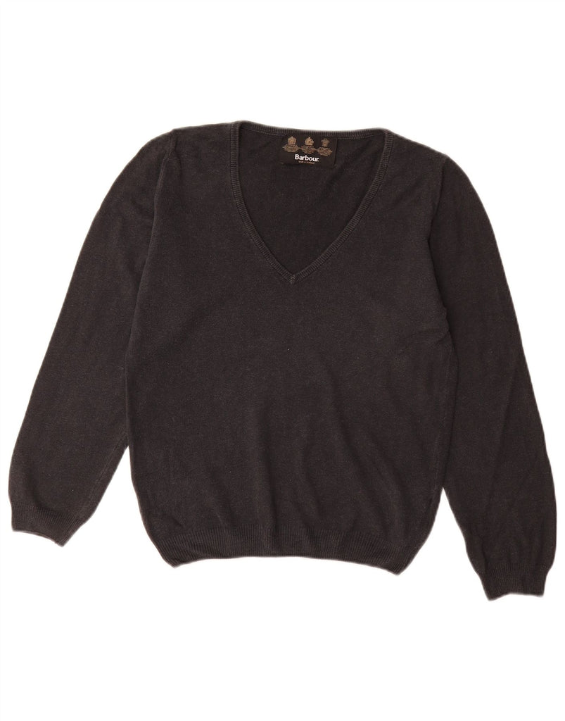 BARBOUR Womens V-Neck Jumper Sweater UK 8 Small Black Cotton