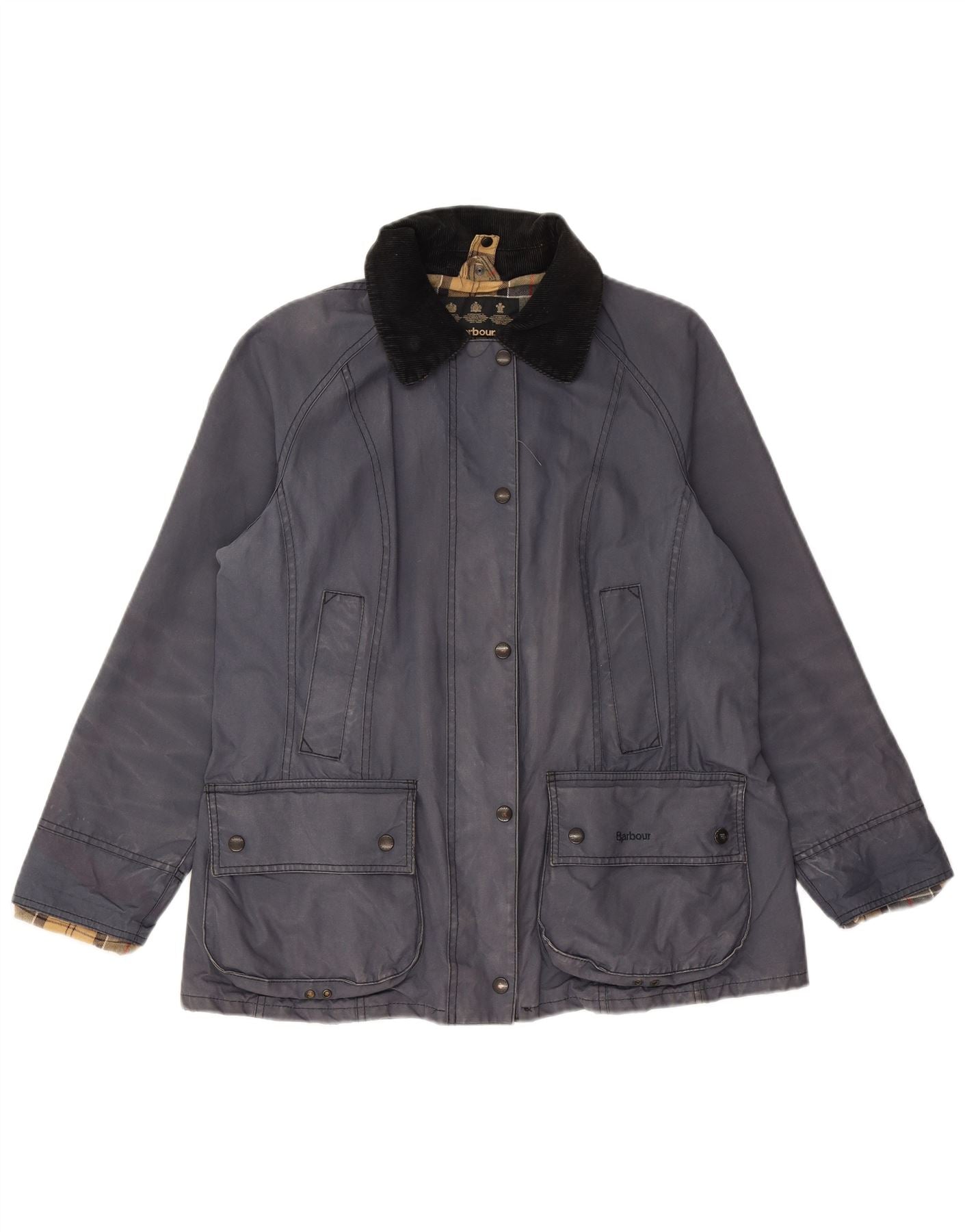 Home > Винтажная одежда Барбур > Куртки > Женская куртка из вощеного хлопка BARBOUR UK 12, средний темно-синий хлопок