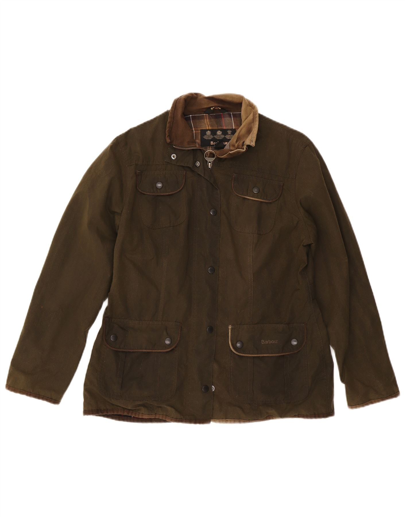 BARBOUR Womens Waxed Cotton Jacket UK 14 Large Khaki Cotton