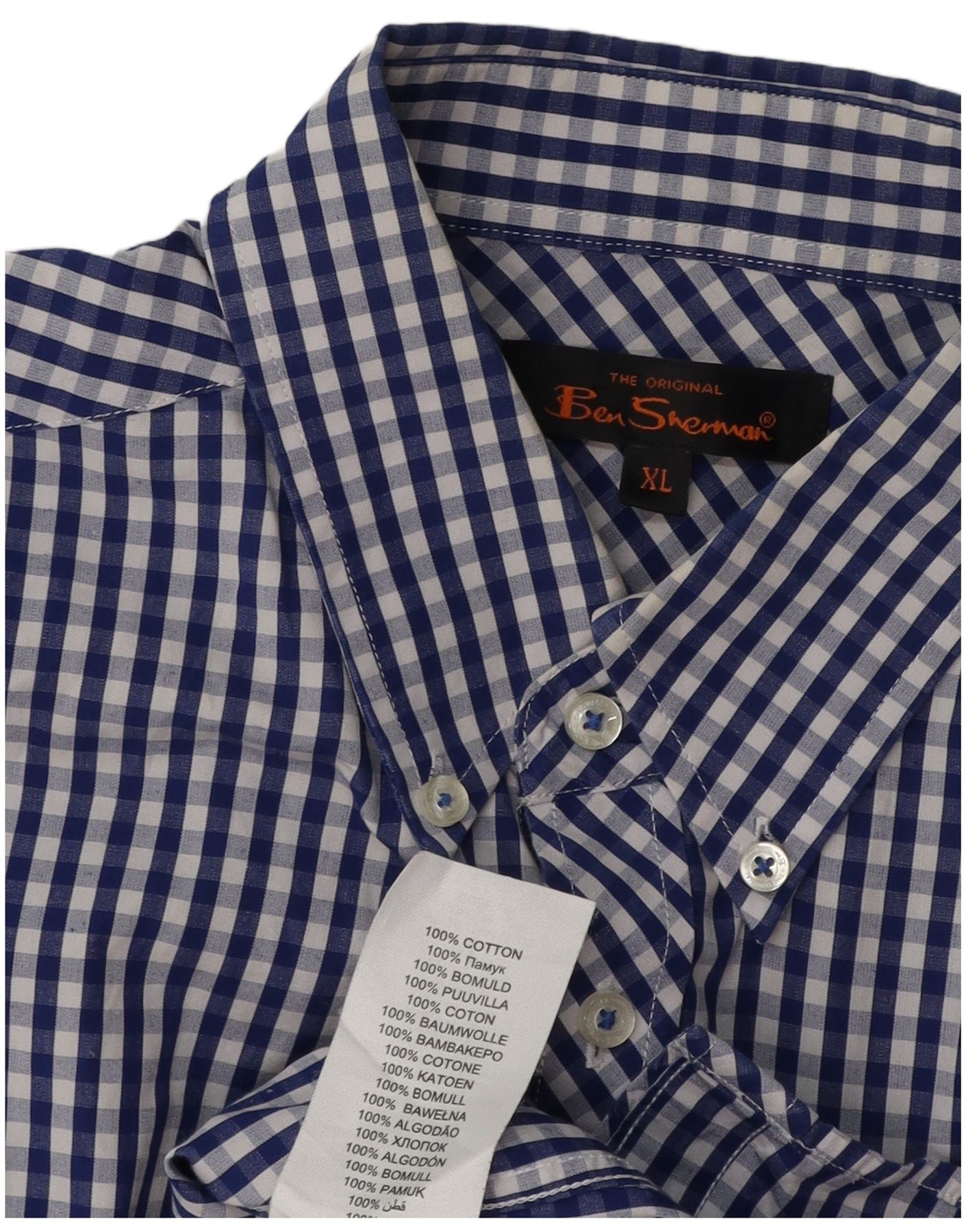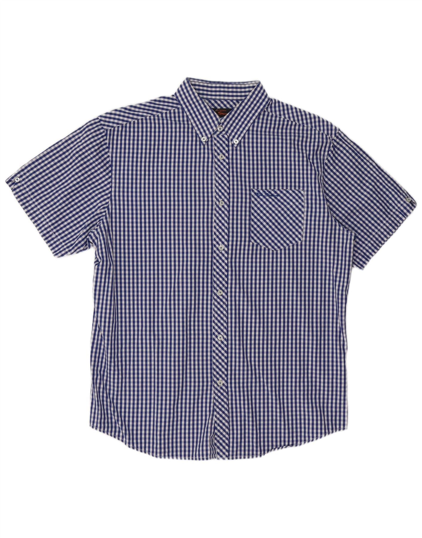 Home > Винтажная одежда Бена Шермана > Мужской > Мужская рубашка с коротким рукавом BEN SHERMAN XL, синяя, хлопок в мелкую клетку