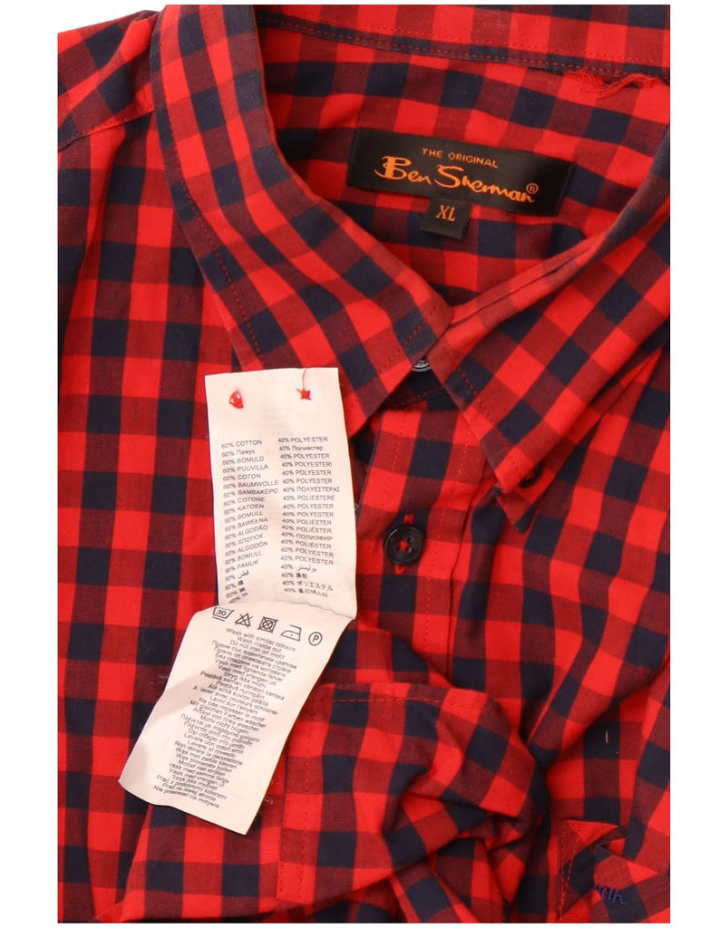 BEN SHERMAN Mens Short Sleeve Shirt XL Red Gingham Cotton