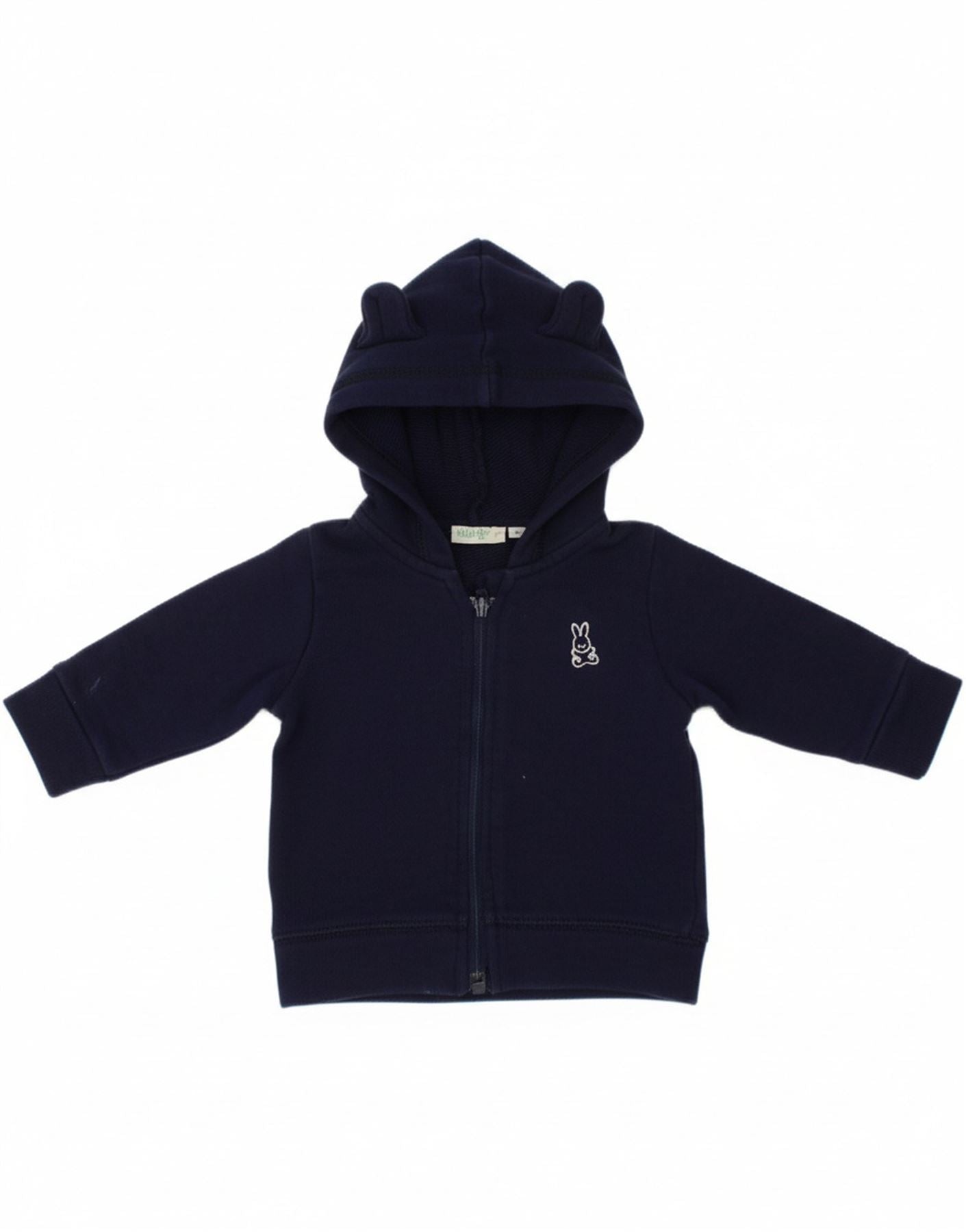 BENETTON Baby Boys Zip Hoodie Sweater 0-3 Months Navy Blue Cotton