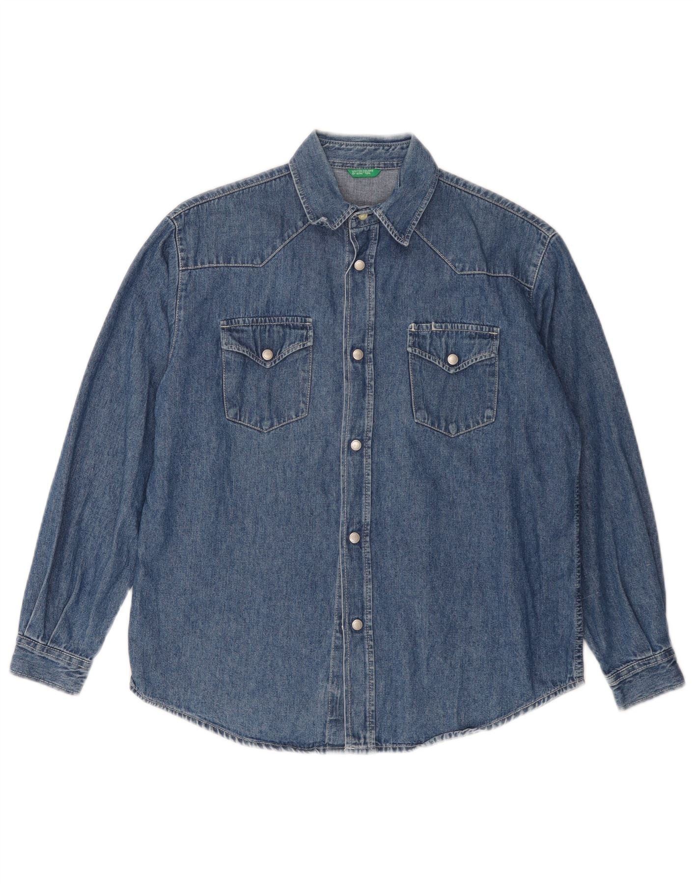 Джинсовая рубашка BENETTON для мальчиков 9–10 лет, большая синяя, хлопковая