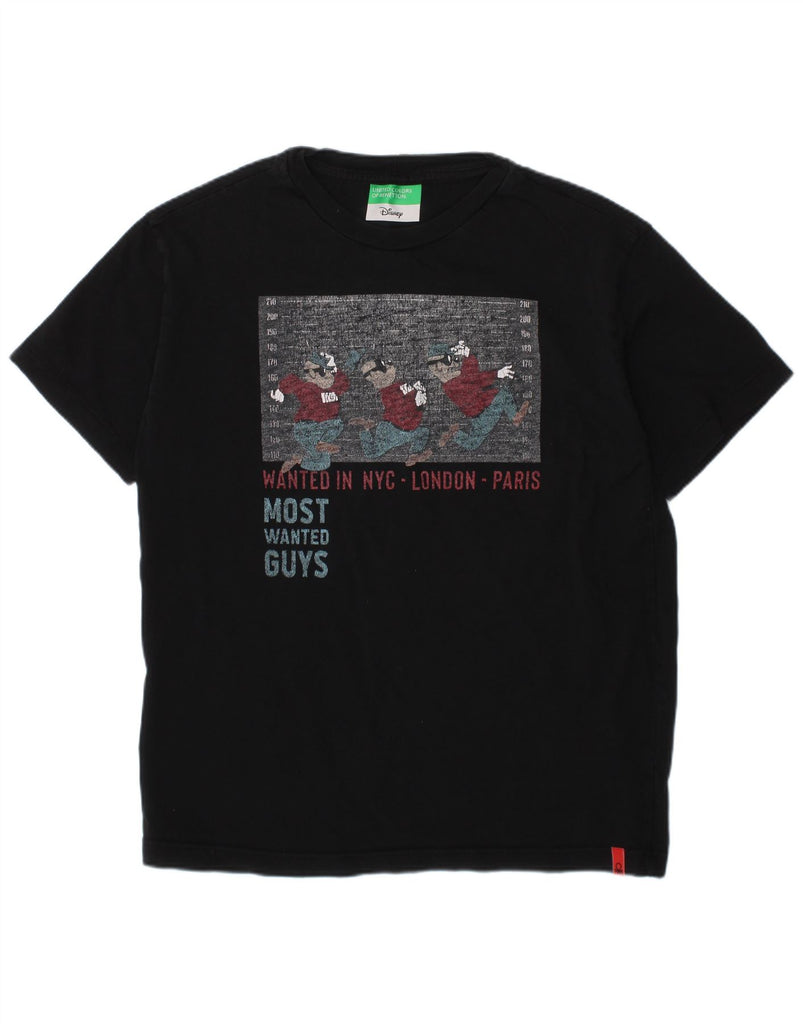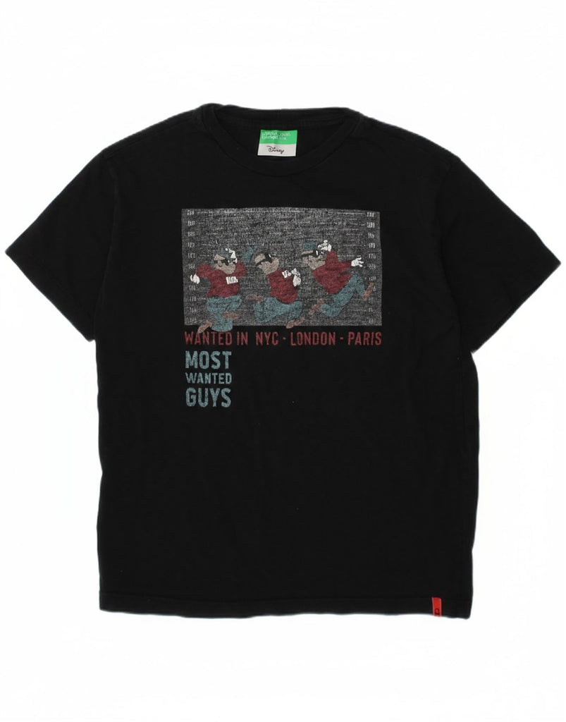 BENETTON Boys Disney Graphic T-Shirt Top 8-9 Years Large Black Cotton