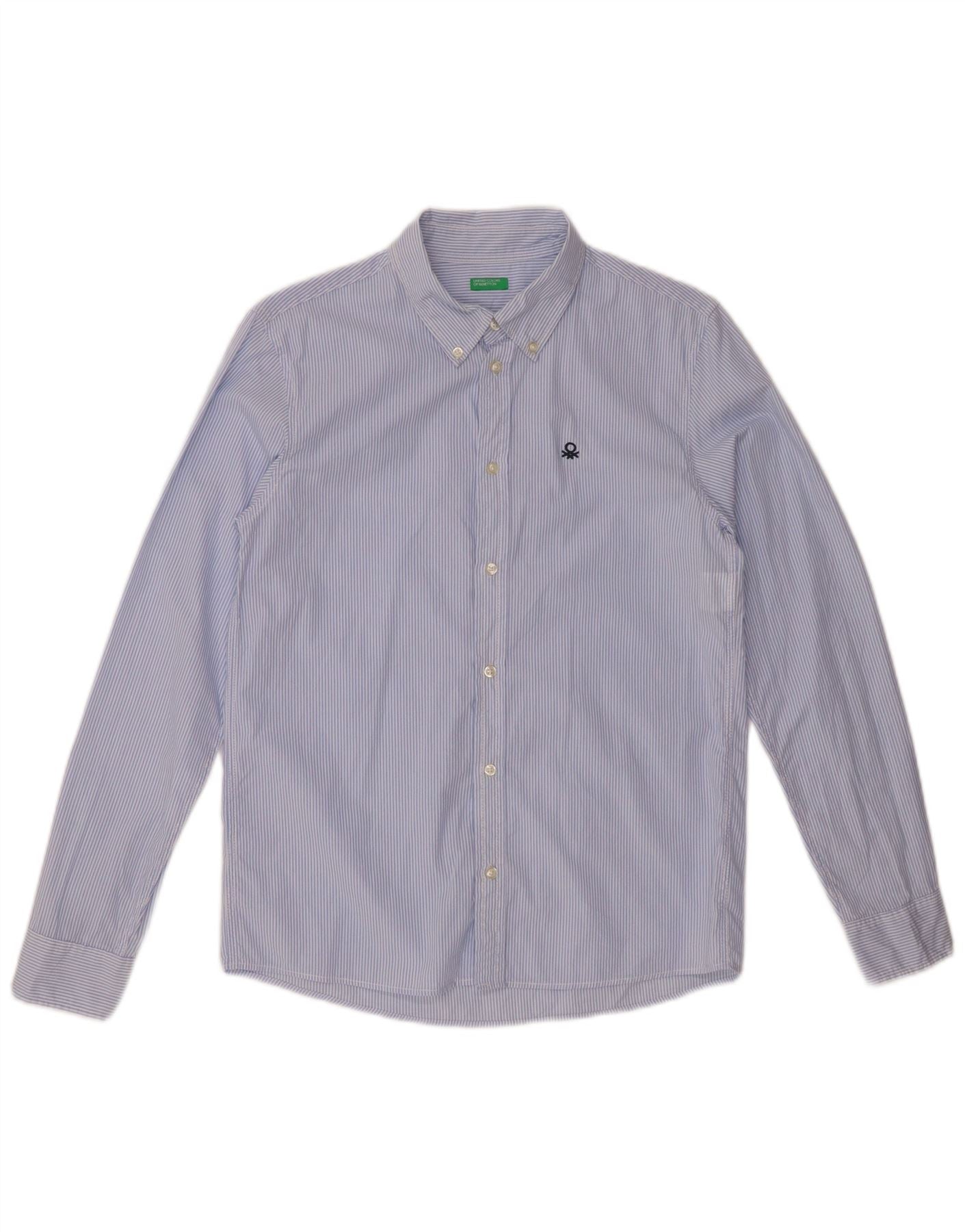 Рубашка BENETTON для мальчиков 13-14 лет, размер 3XL, синяя хлопковая полоска