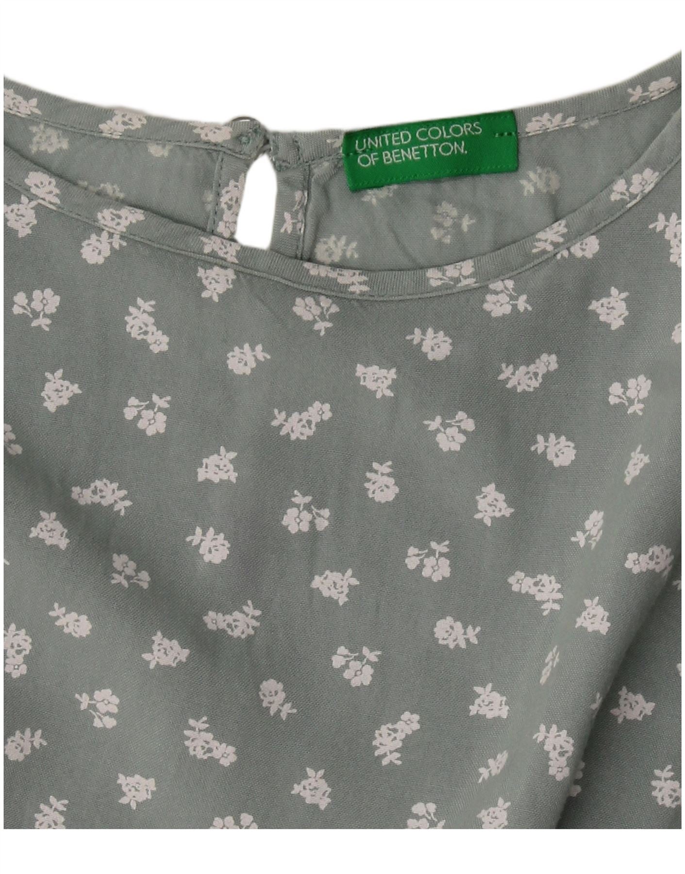 Базовое платье BENETTON для девочек 11-12 лет, зеленое с цветочным принтом