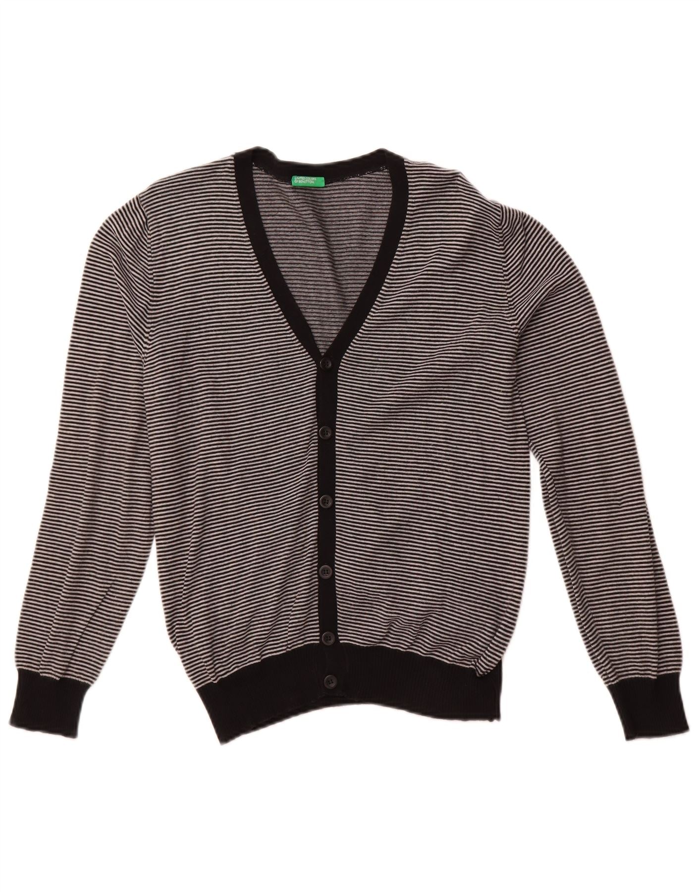 Мужской кардиган BENETTON, маленький серый хлопковый свитер в тонкую полоску