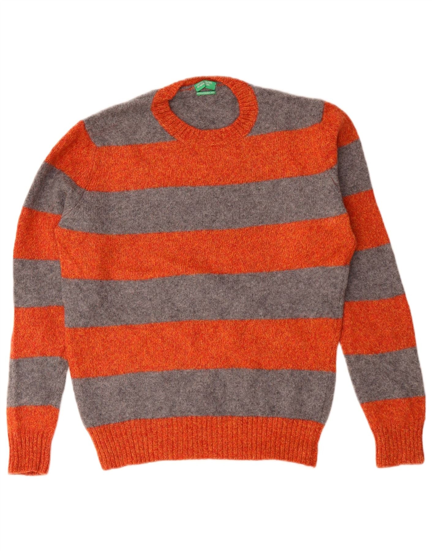 Home > Винтажная одежда Benetton > Мужской > Мужской джемпер с круглым вырезом BENETTON, маленький оранжевый полосатый свитер из натуральной шерсти