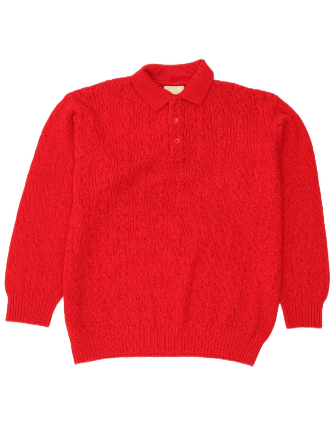 Мужской свитер BENETTON с воротником-поло IT 52, большой красный из натуральной шерсти