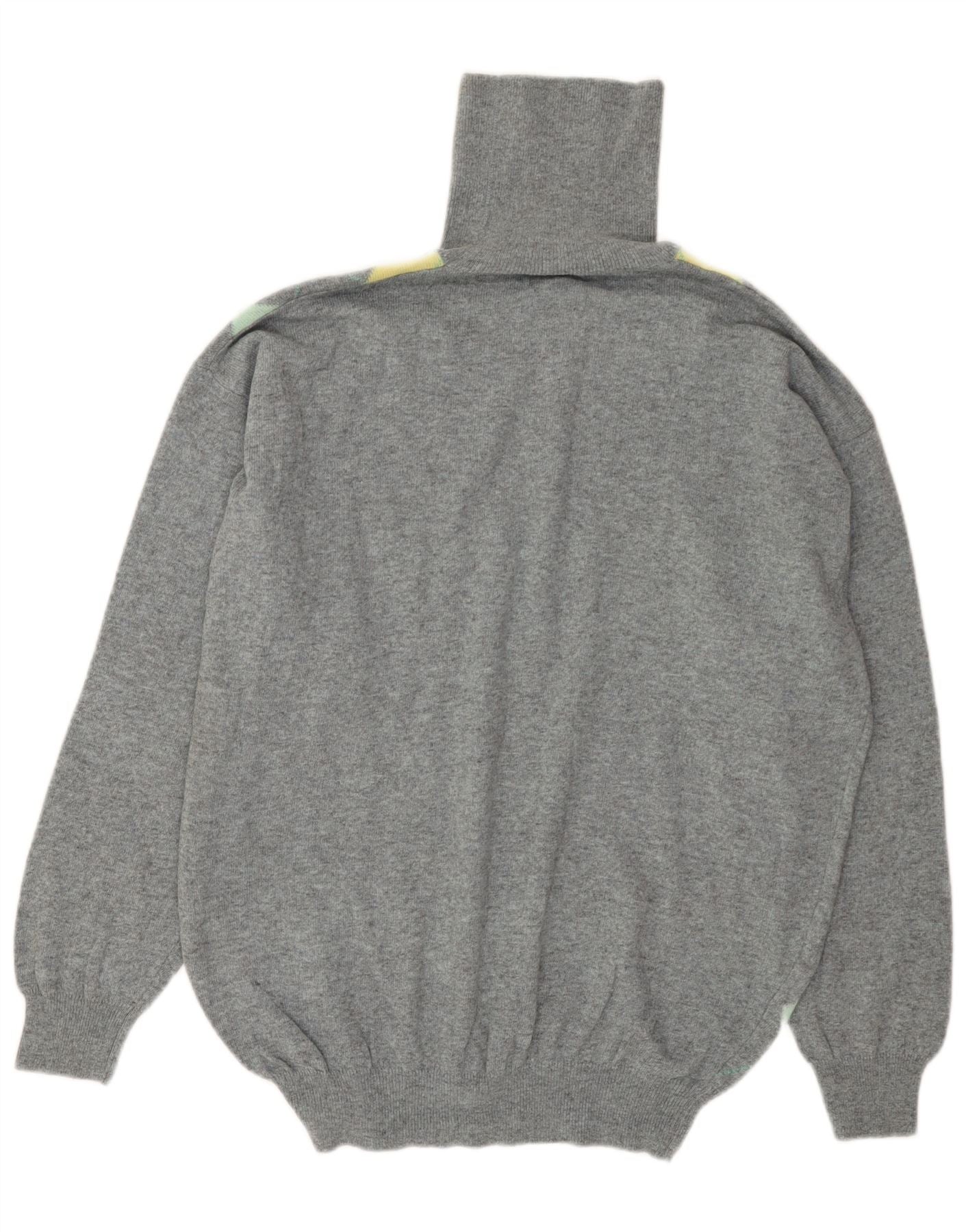 Home > Винтажная одежда Benetton > Мужской > Мужской джемпер BENETTON с высоким воротником, большой серый цвет с узором аргайл/ромб, шерсть
