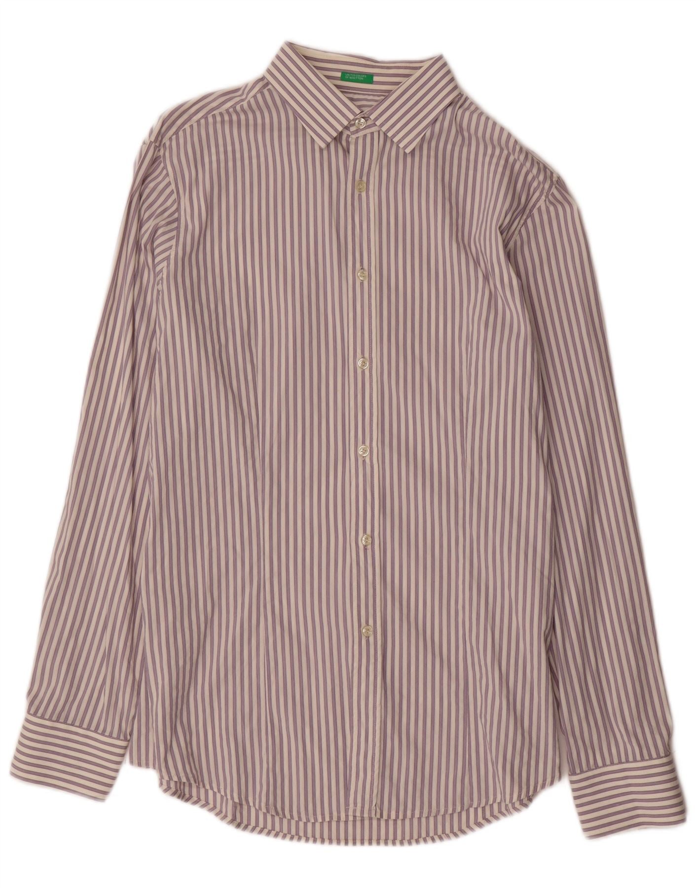 Home > Винтажная одежда Benetton > Мужской > BENETTON Мужская рубашка 2XL из хлопка в фиолетовую полоску