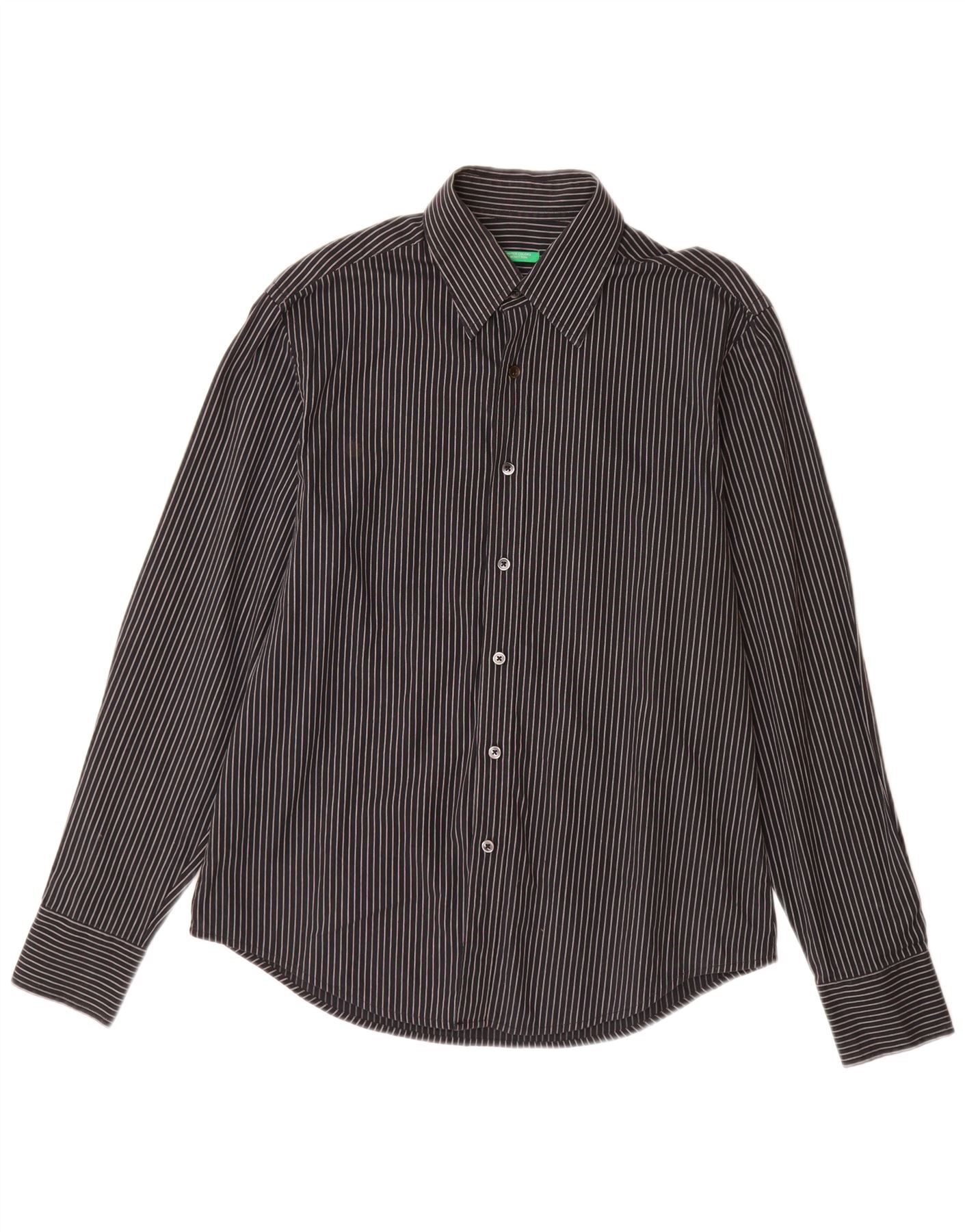 Home > Винтажная одежда Benetton > Мужской > BENETTON Мужская рубашка среднего размера из хлопка в тонкую полоску черного цвета