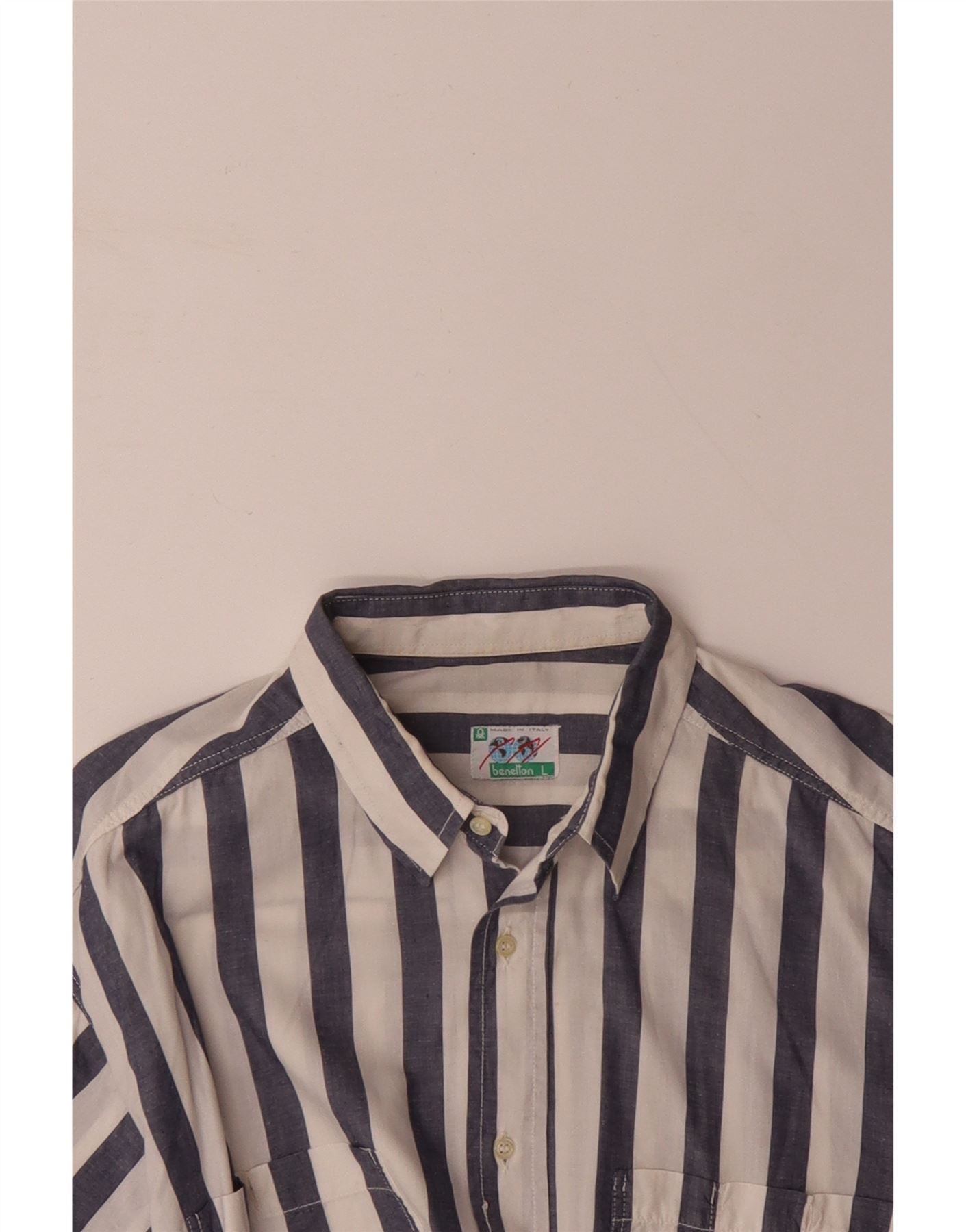 Home > Винтажная одежда Benetton > Мужской > BENETTON Мужская рубашка с коротким рукавом, большая темно-синяя полоска