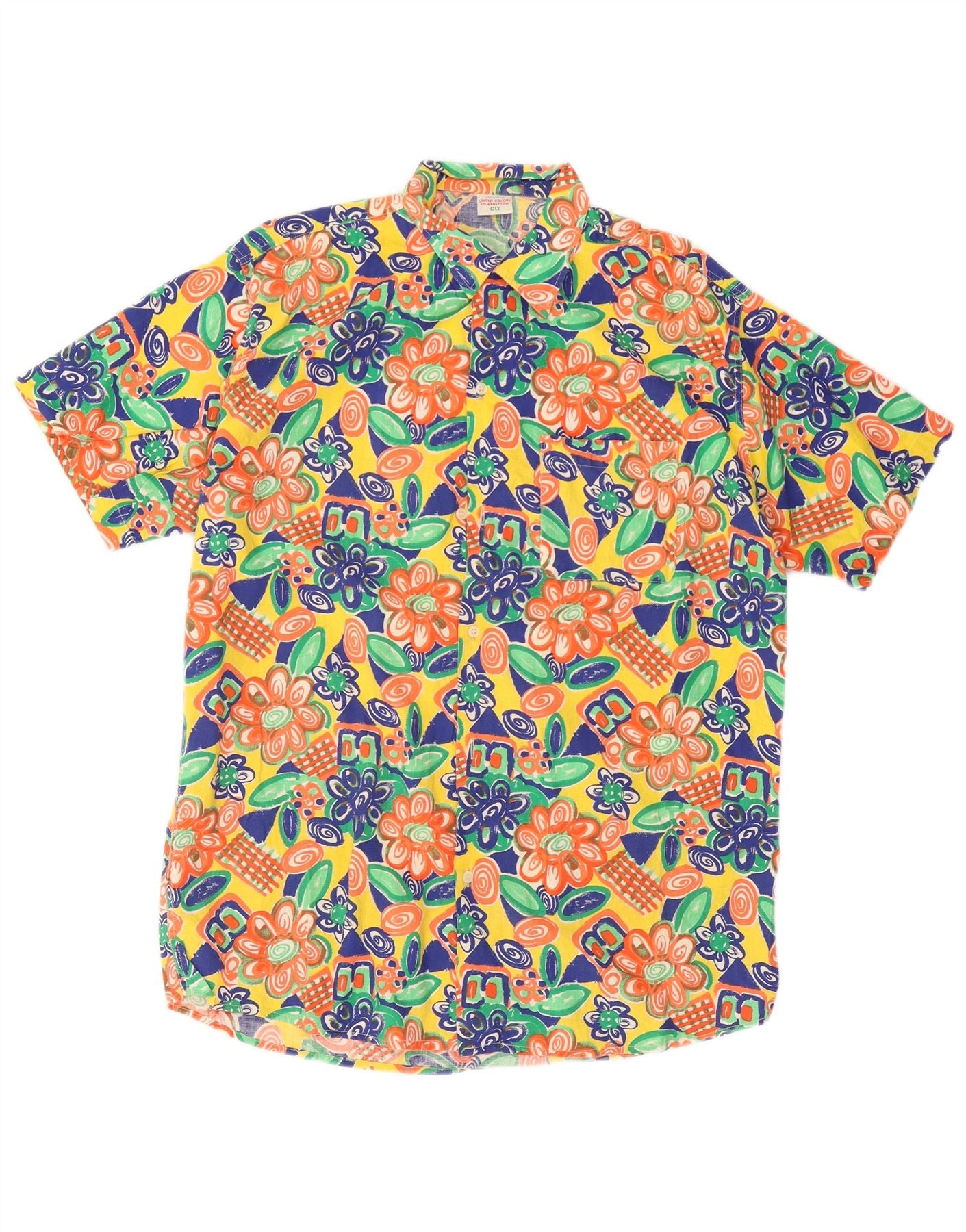 Home > Винтажная одежда Benetton > Мужской > BENETTON Мужская рубашка с коротким рукавом, средний разноцветный цветочный принт